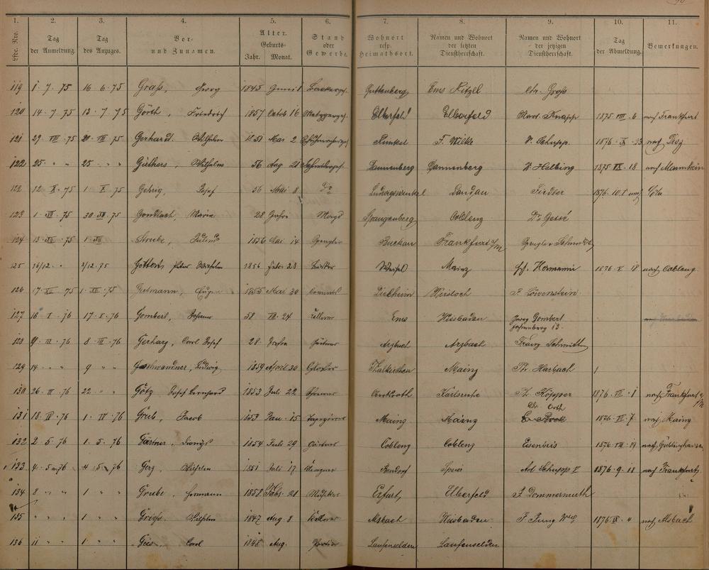 175: Melderegister der Gewerbegehilfen, Gesellen und Dienstboten