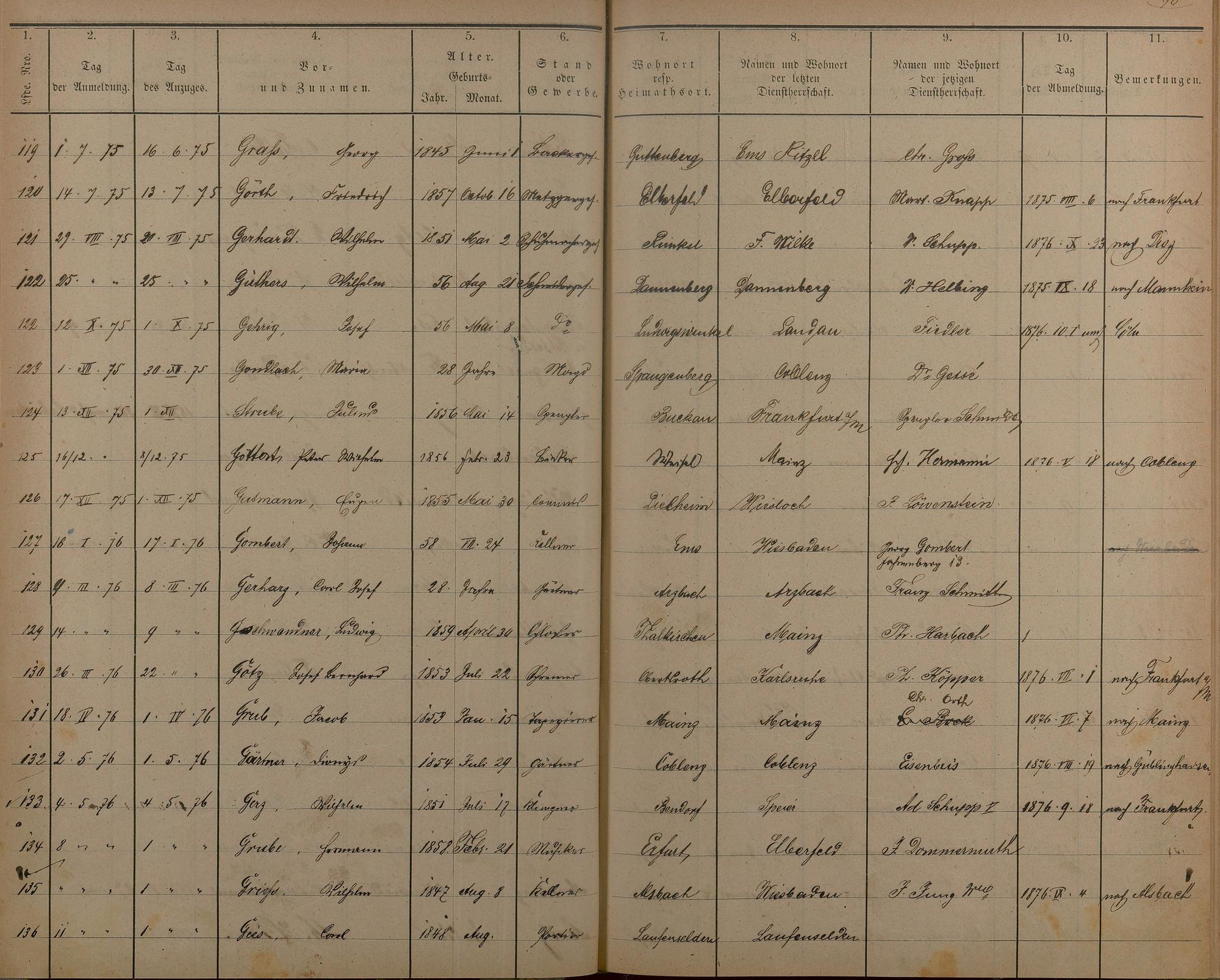 Melderegister der Gewerbegehilfen, Gesellen und Dienstboten