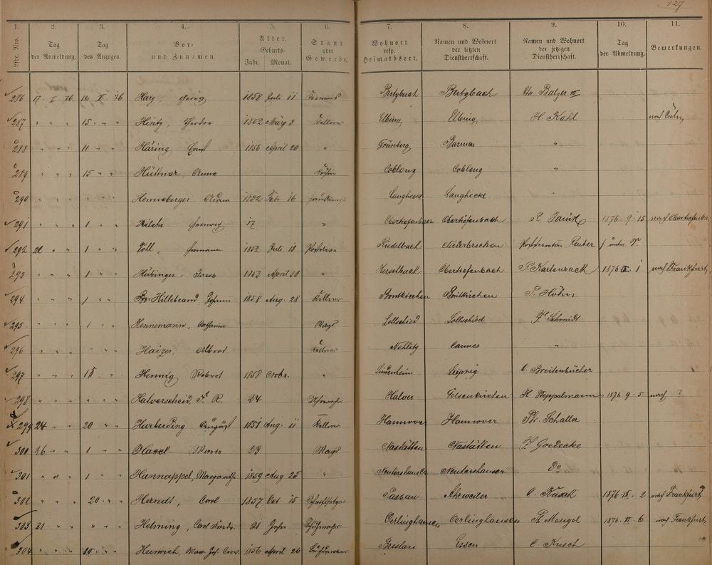 Melderegister der Gewerbegehilfen, Gesellen und Dienstboten