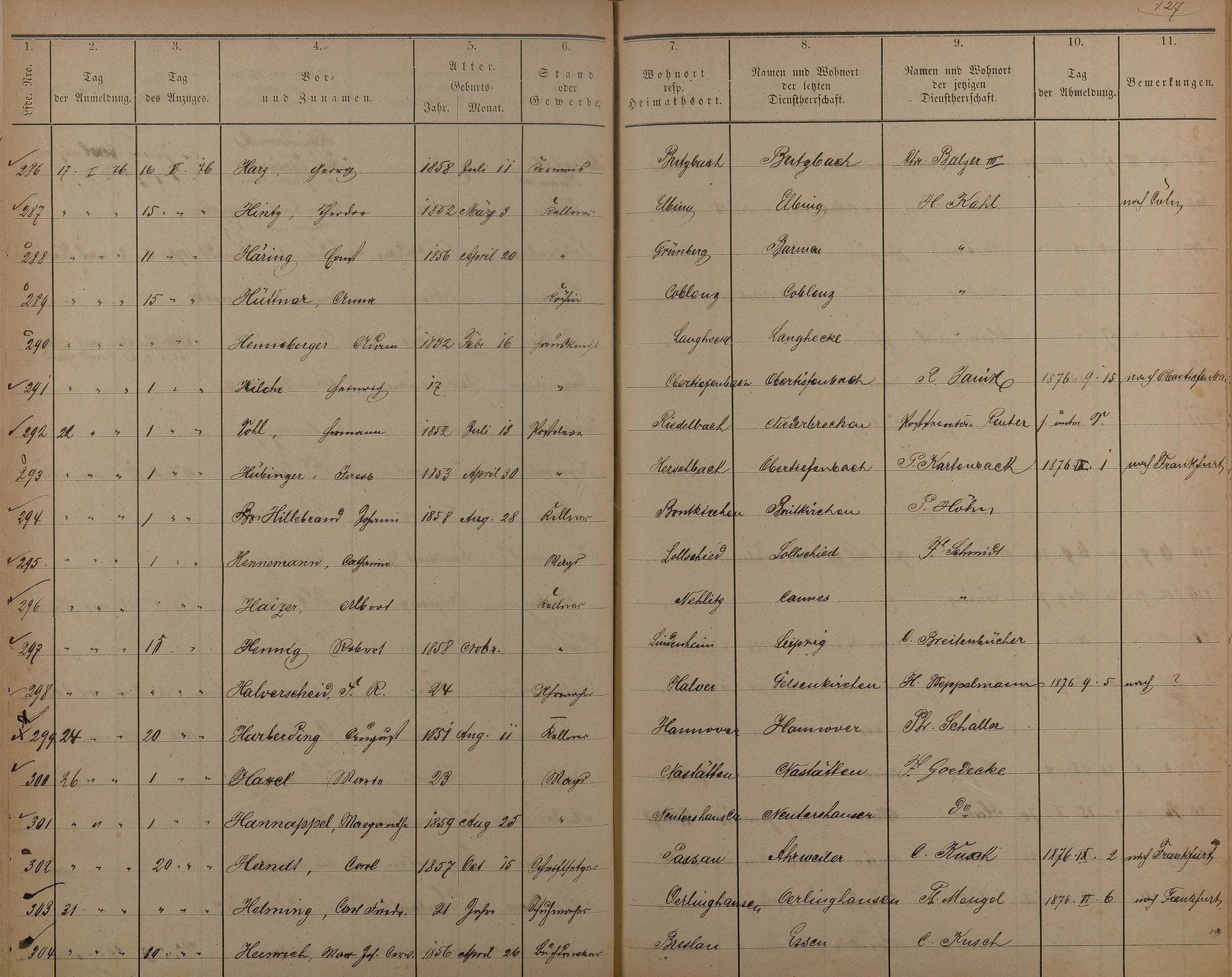175: Melderegister der Gewerbegehilfen, Gesellen und Dienstboten