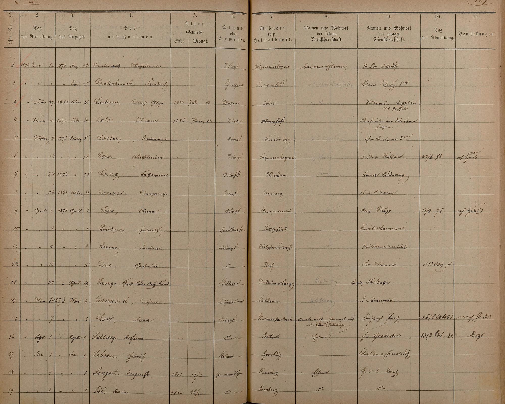 Melderegister der Gewerbegehilfen, Gesellen und Dienstboten