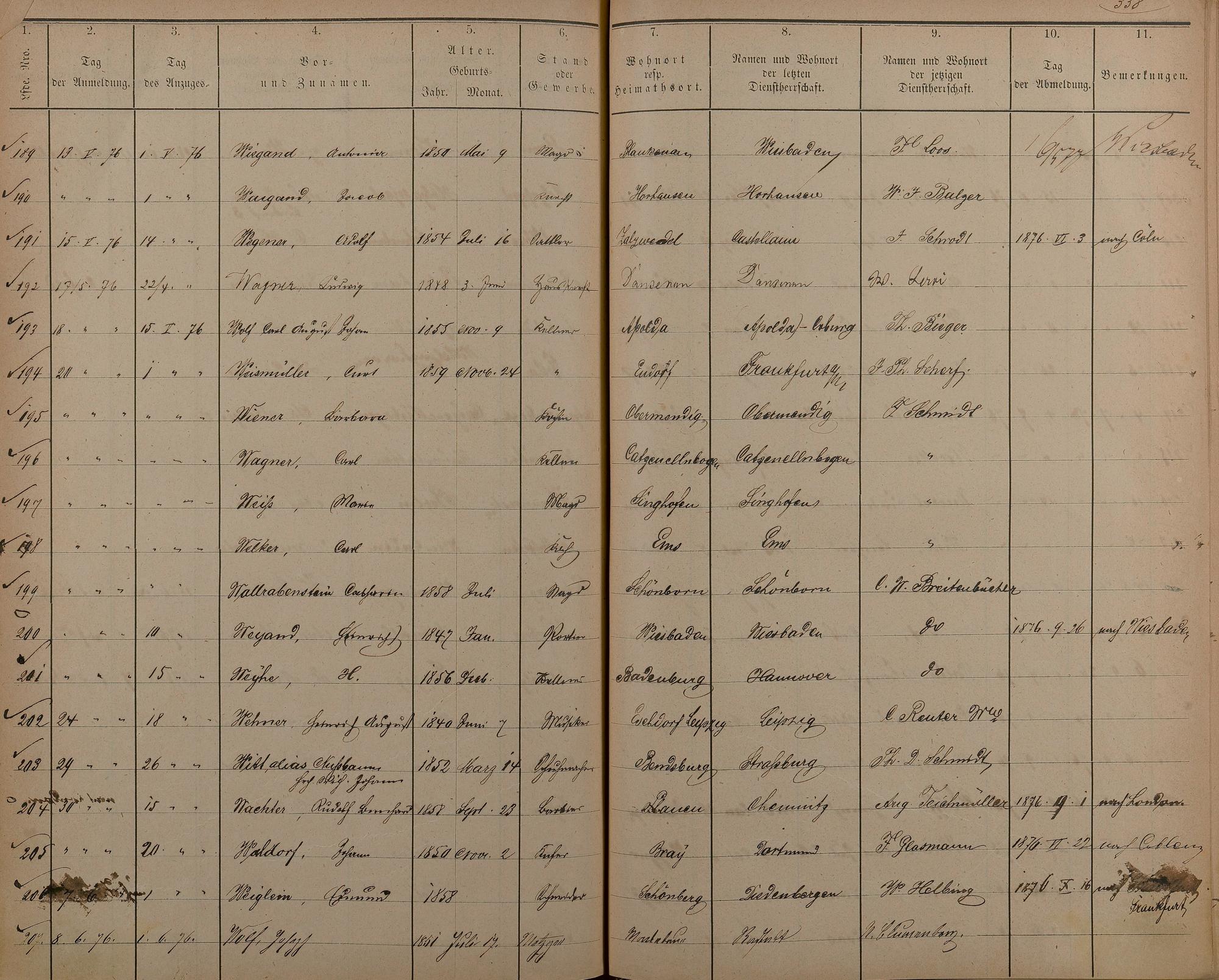Melderegister der Gewerbegehilfen, Gesellen und Dienstboten