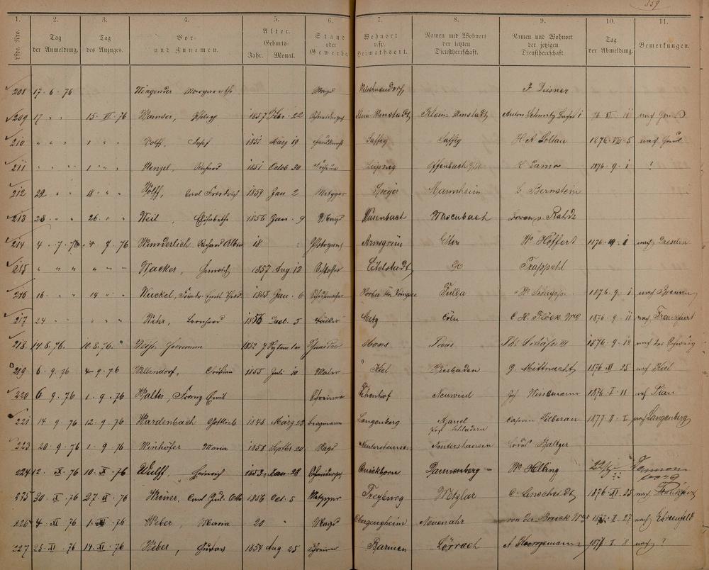 Melderegister der Gewerbegehilfen, Gesellen und Dienstboten