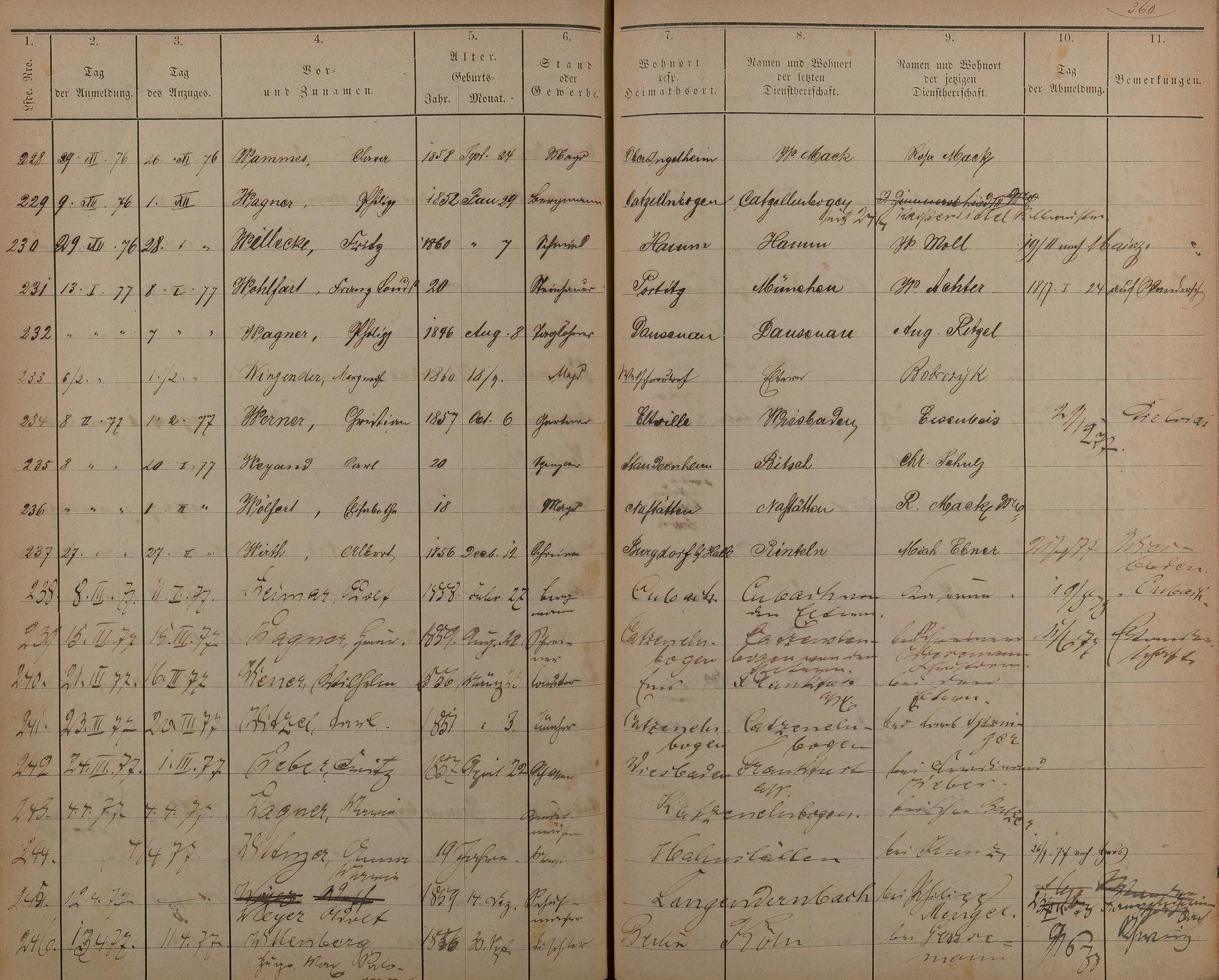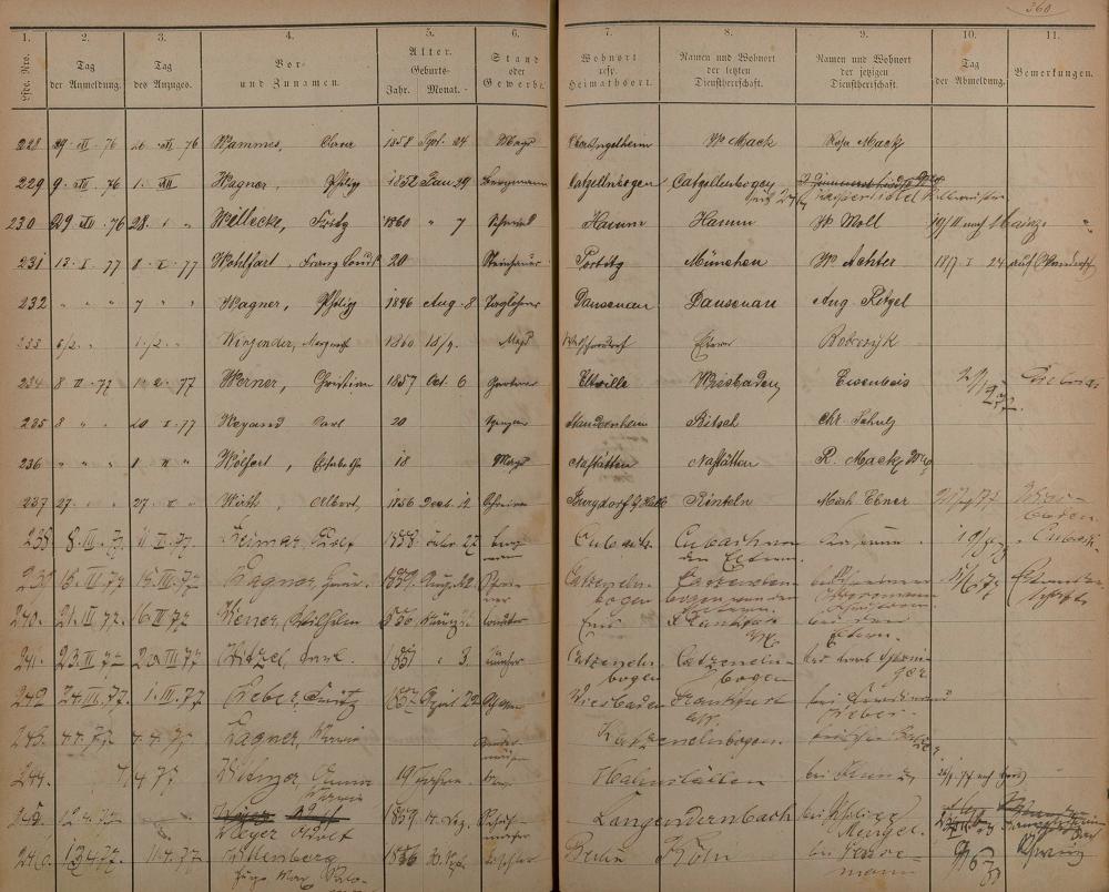 Melderegister der Gewerbegehilfen, Gesellen und Dienstboten