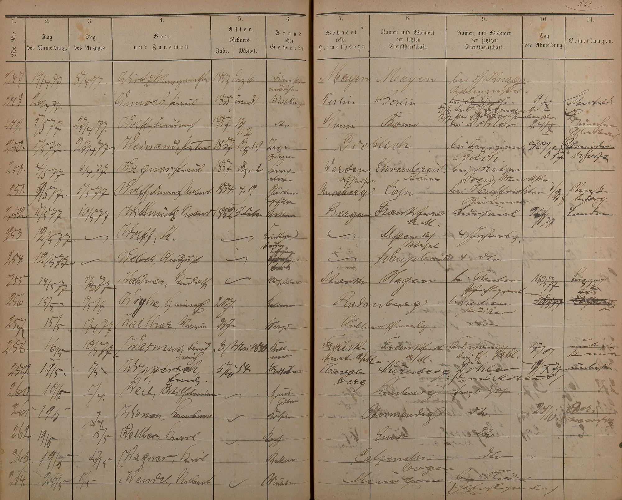 Melderegister der Gewerbegehilfen, Gesellen und Dienstboten