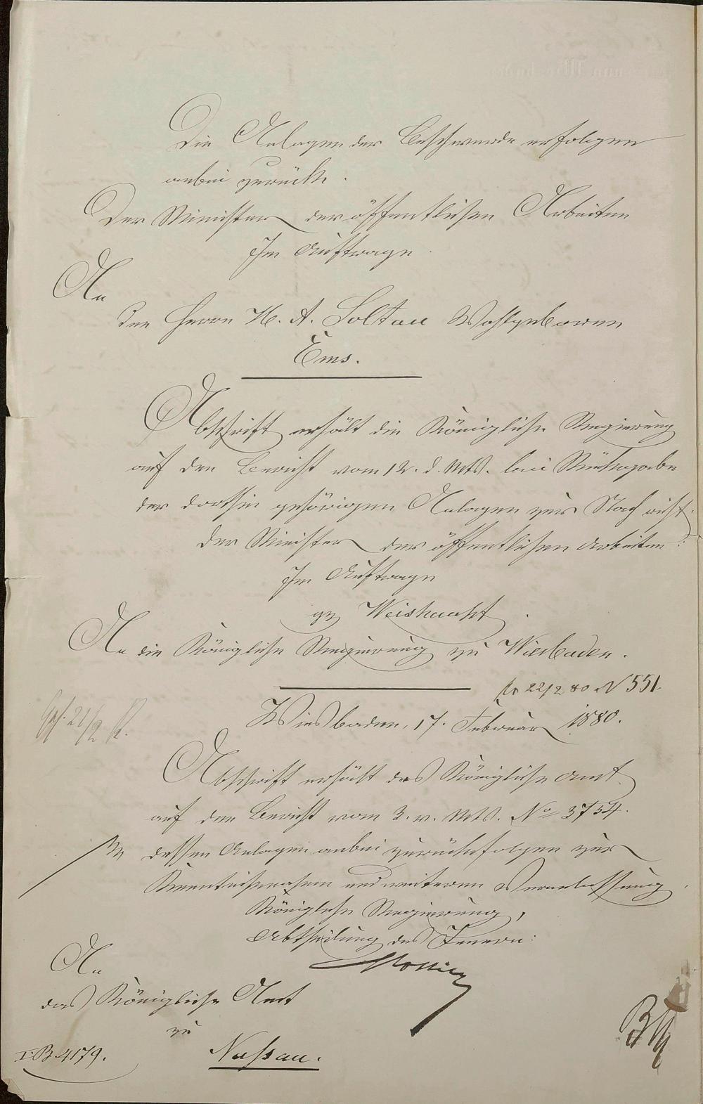 Anbau eines Speisesaals am Hotel "Soltau" des Asmus Heinrich Soltau/Karl Friedrich Heinrich Becker/Nassauische Landesbank/Reichsarbeitsdienst/Nassauische Sparkasse Bad Ems Römerstraße Nr. 91 (86) Flur 92 Nr. 59 (Ablehnung)