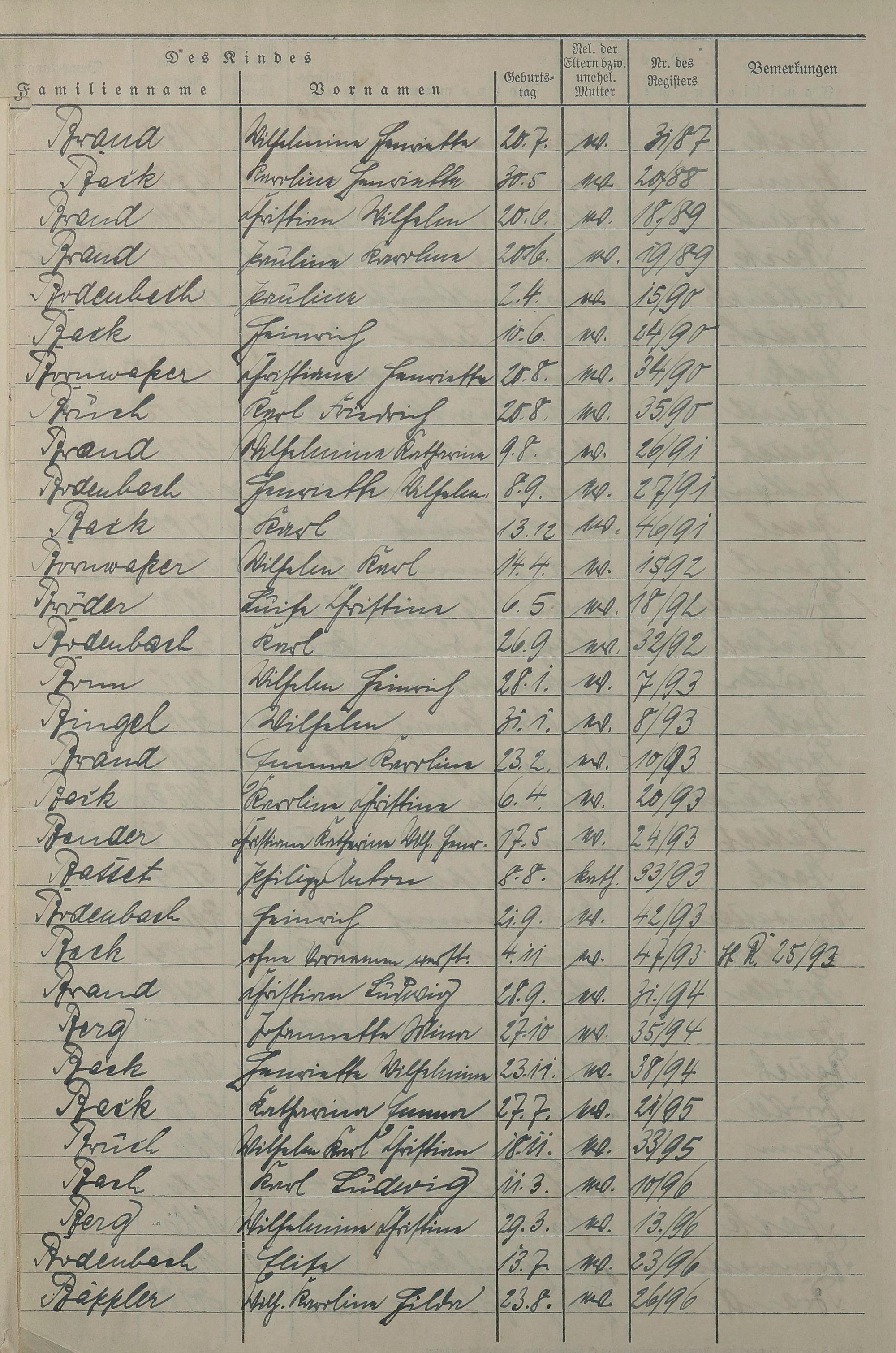 Geburtsregister 1874-1974 - Namensregister A - Z