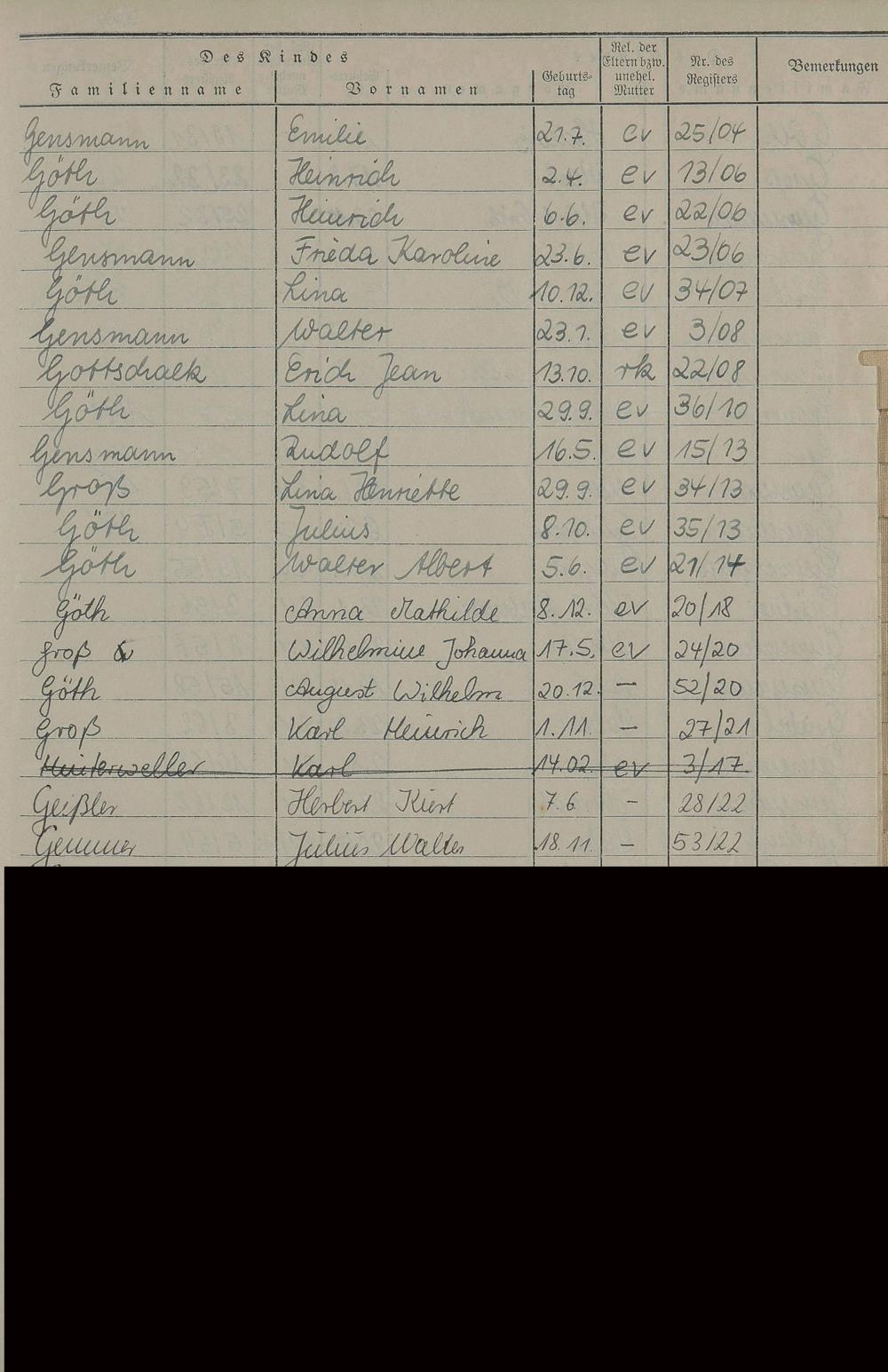 Geburtsregister 1874-1974 - Namensregister A - Z