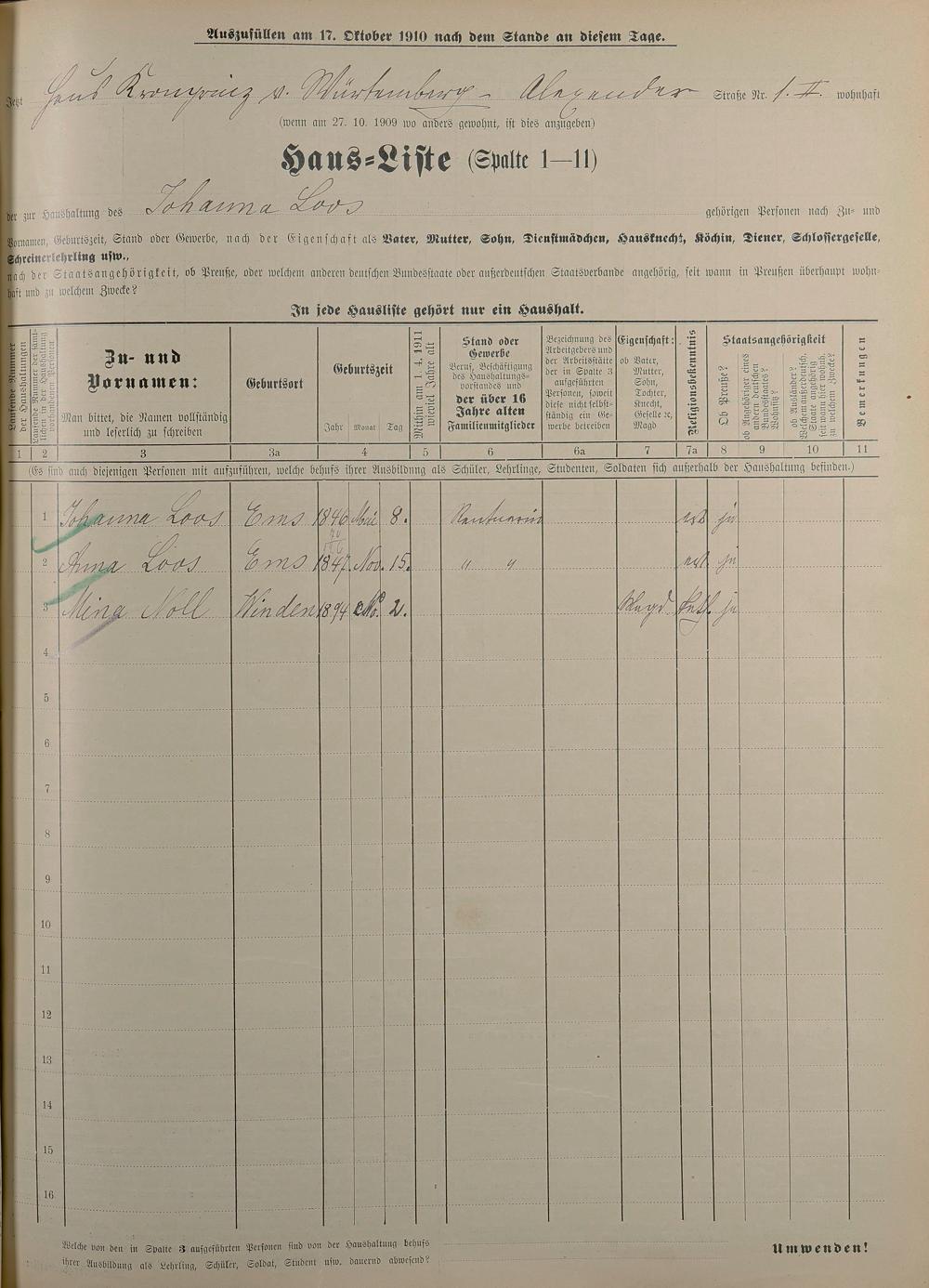 Personenstandsaufnahme zur Klassensteuerrolle für 1910