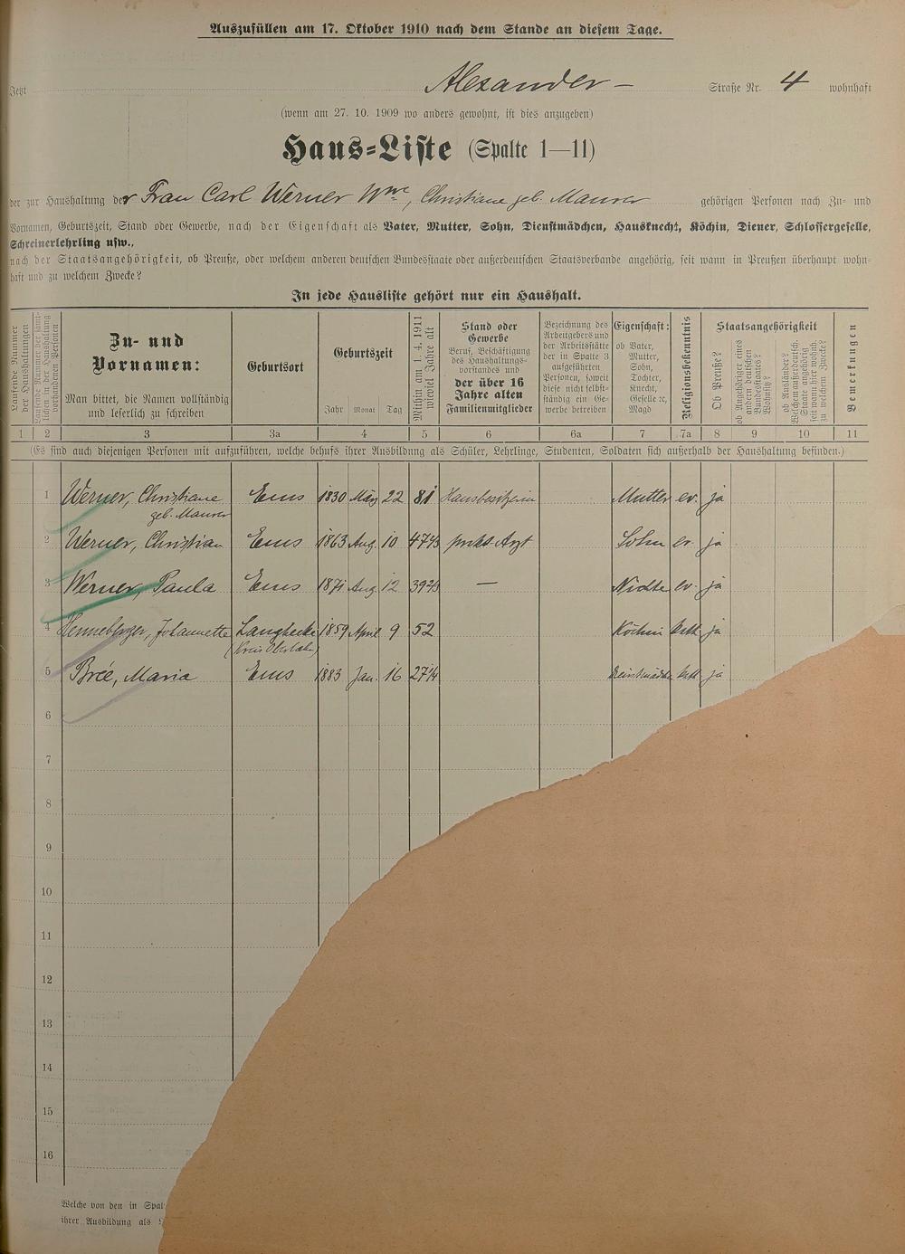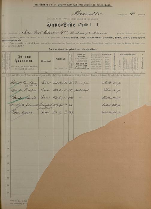 Personenstandsaufnahme zur Klassensteuerrolle für 1910