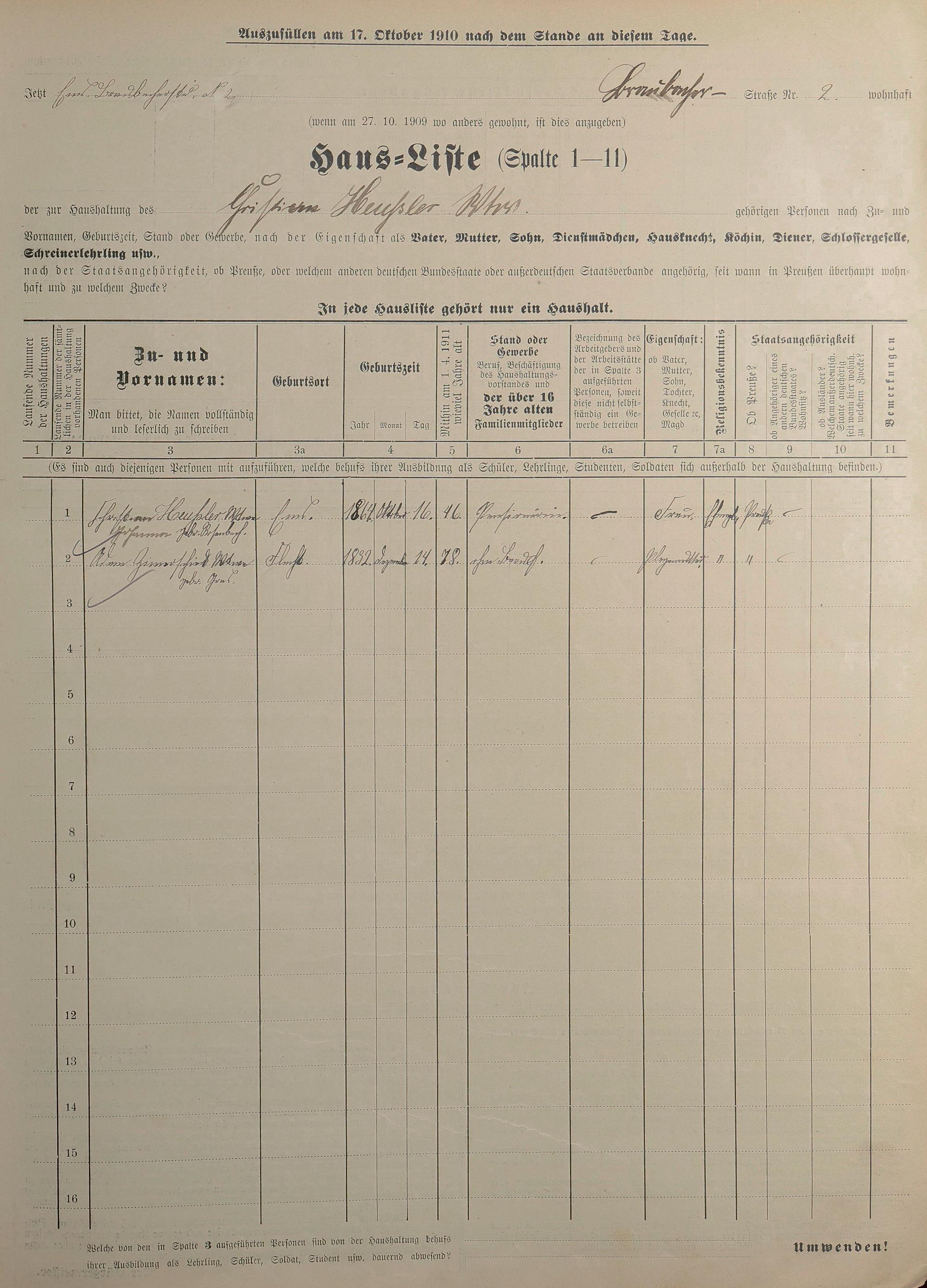 Personenstandsaufnahme zur Klassensteuerrolle für 1910