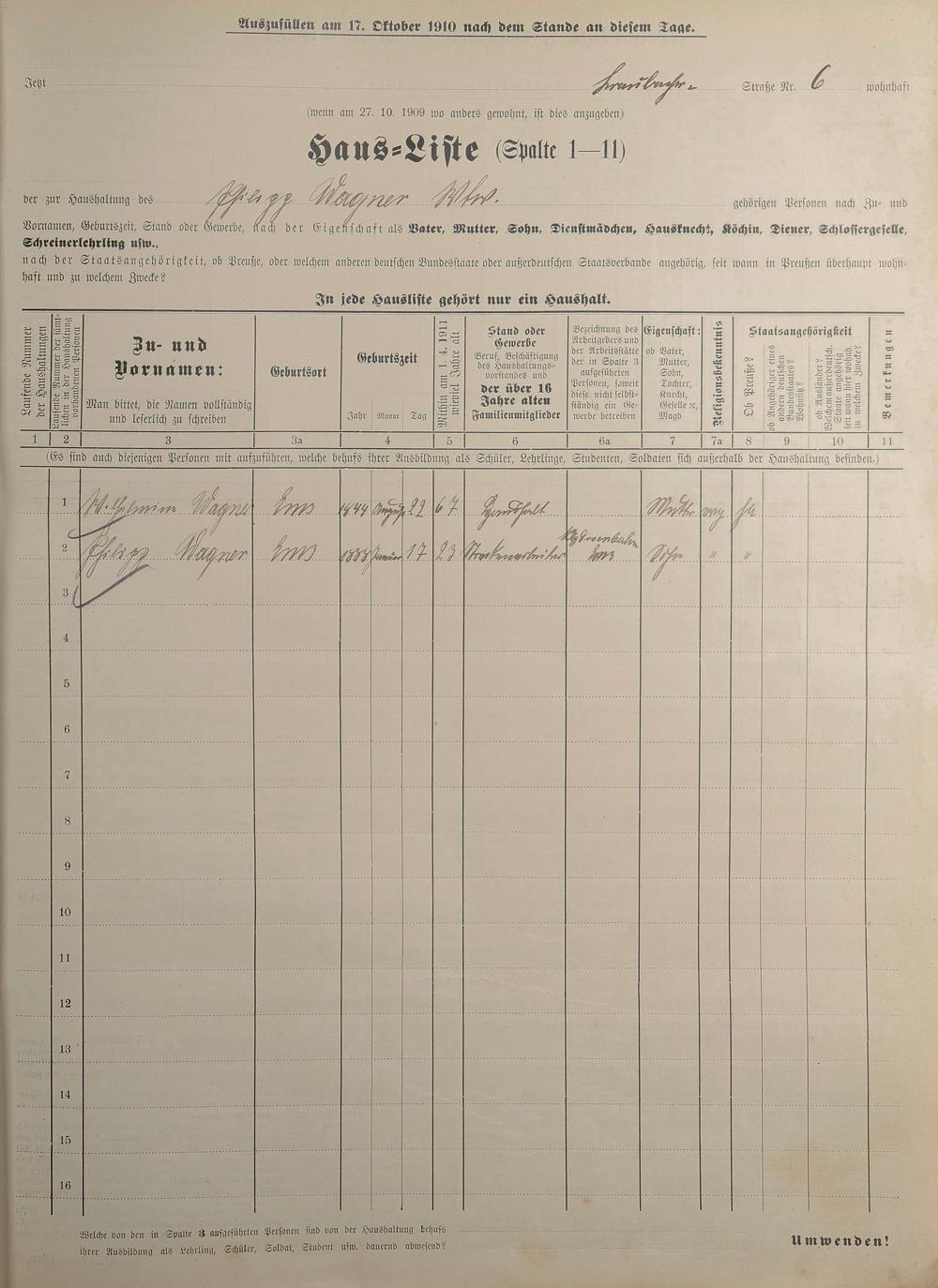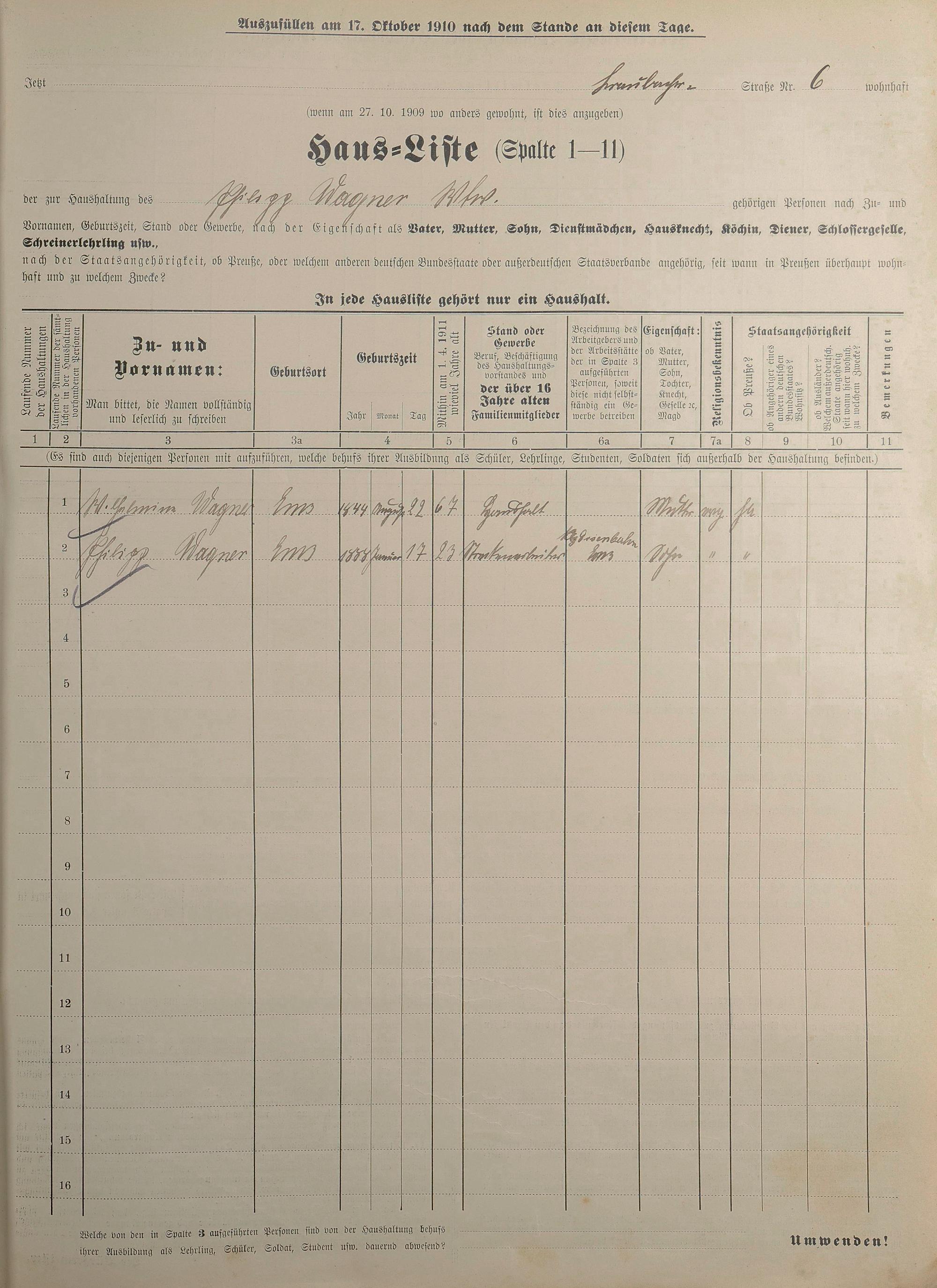 Personenstandsaufnahme zur Klassensteuerrolle für 1910