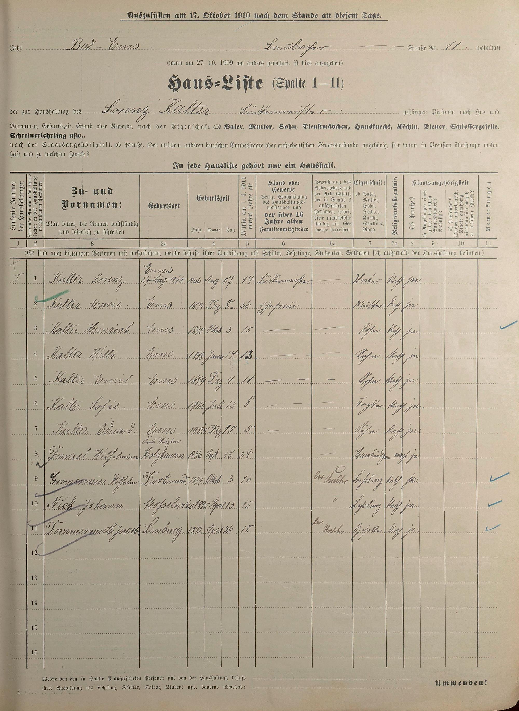 Personenstandsaufnahme zur Klassensteuerrolle für 1910