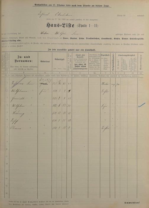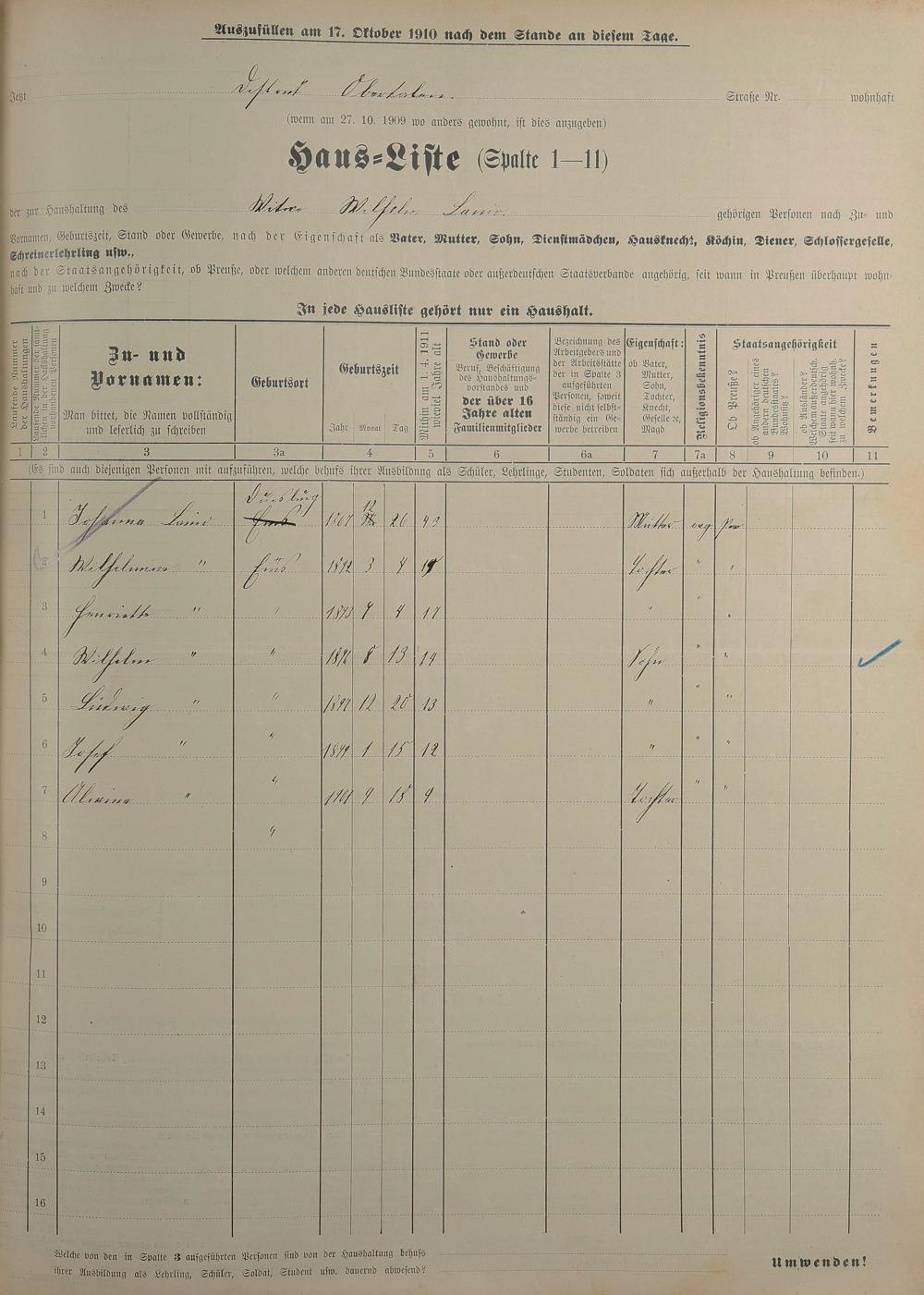 Personenstandsaufnahme zur Klassensteuerrolle für 1910