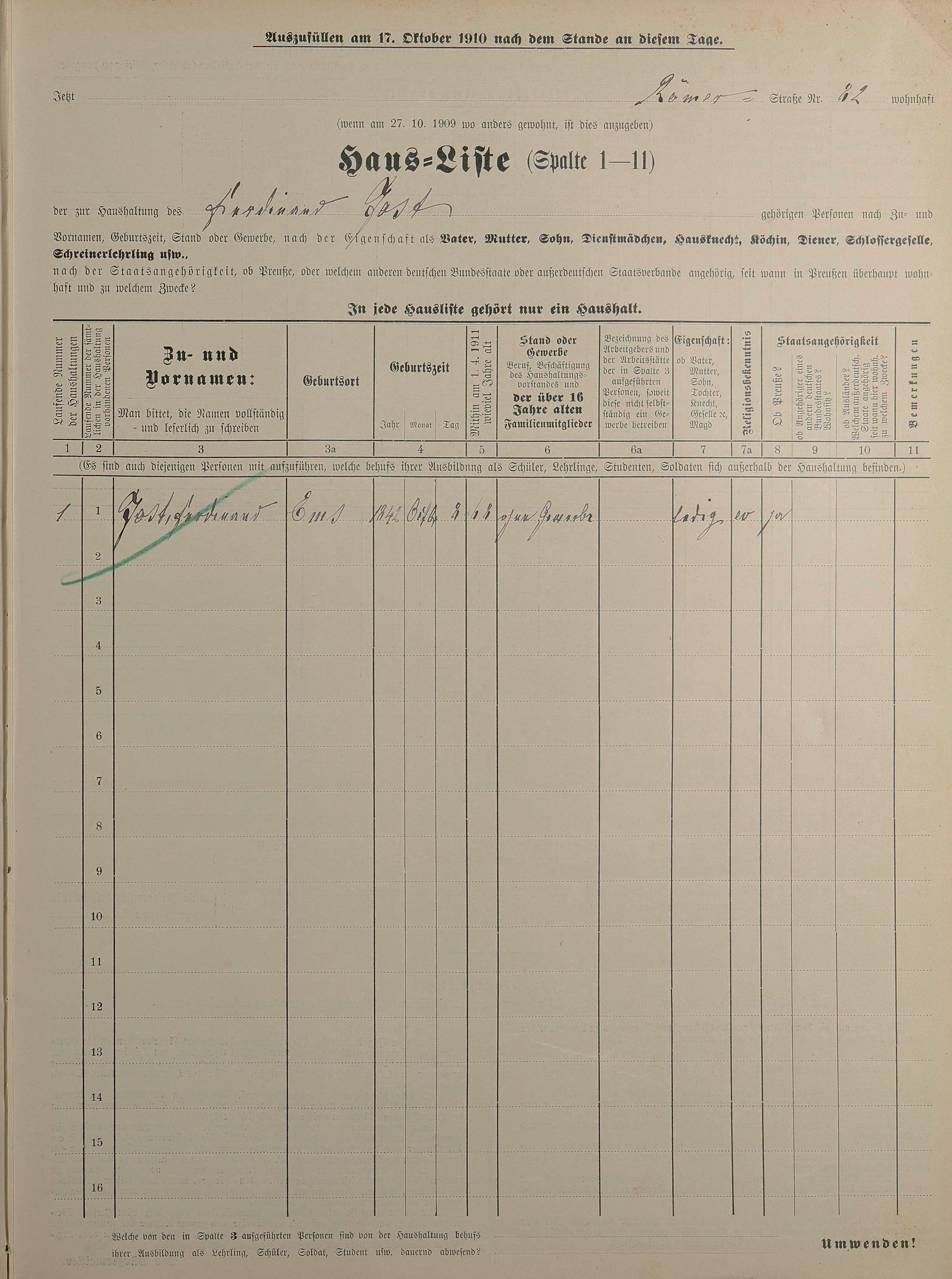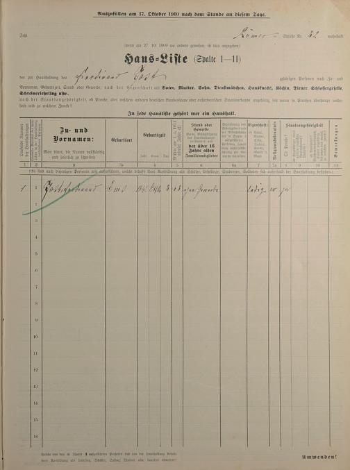 Personenstandsaufnahme zur Klassensteuerrolle für 1910
