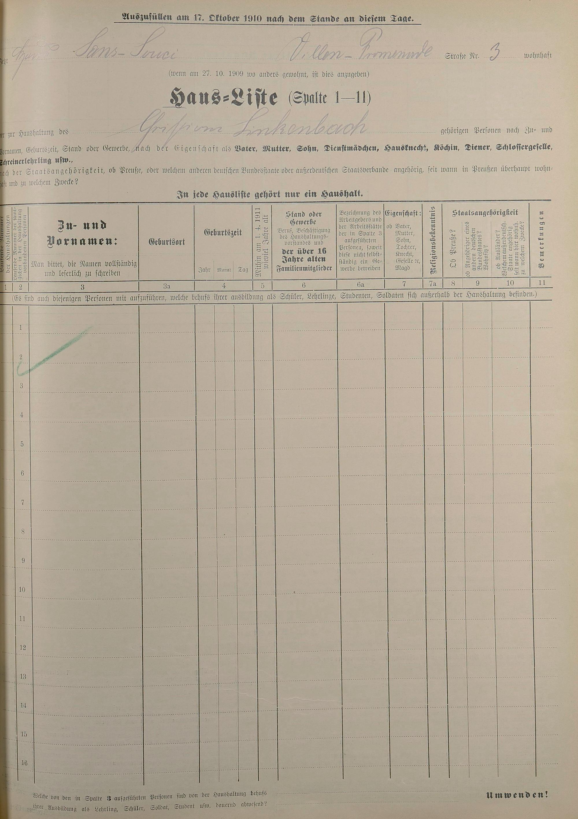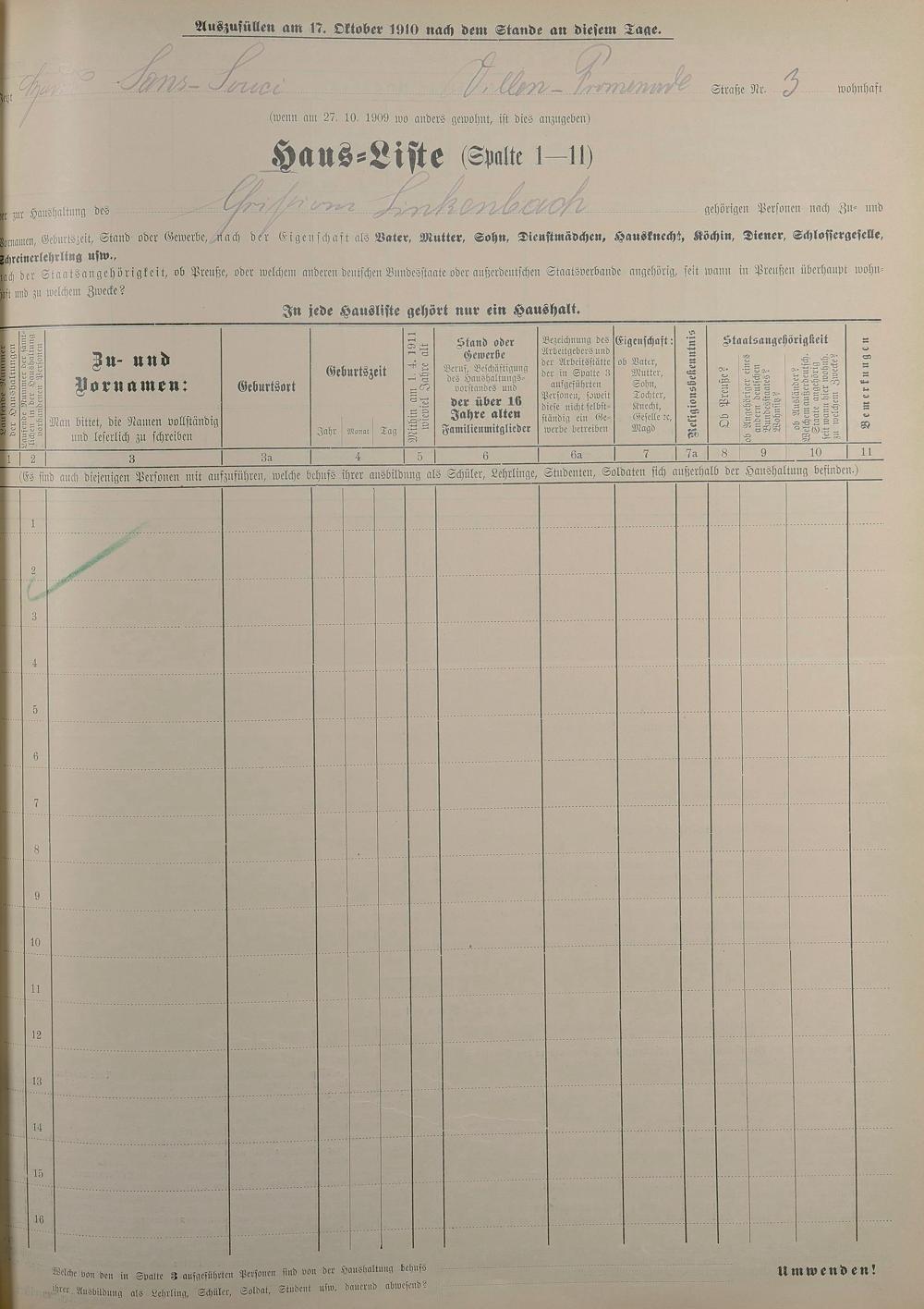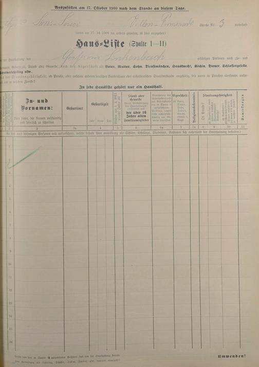 Personenstandsaufnahme zur Klassensteuerrolle für 1910