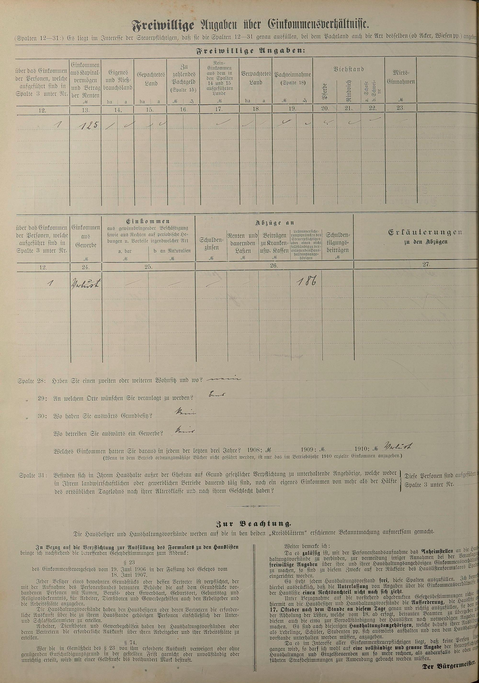 Personenstandsaufnahme zur Klassensteuerrolle für 1910