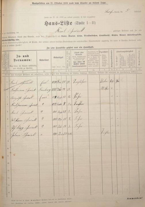 Personenstandsaufnahme zur Klassensteuerrolle für 1910