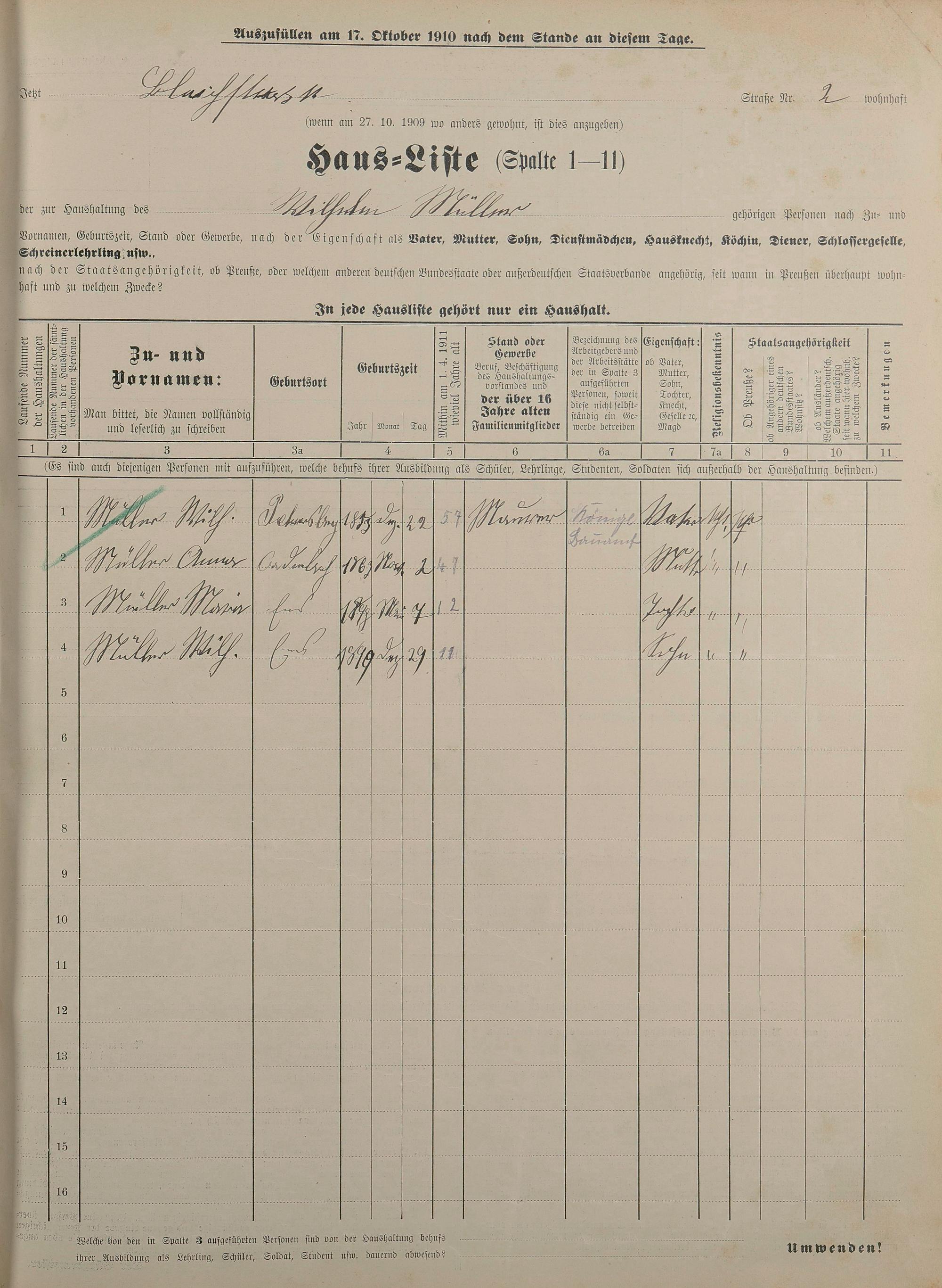 Personenstandsaufnahme zur Klassensteuerrolle für 1910