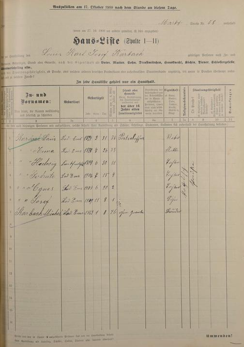 Personenstandsaufnahme zur Klassensteuerrolle für 1910