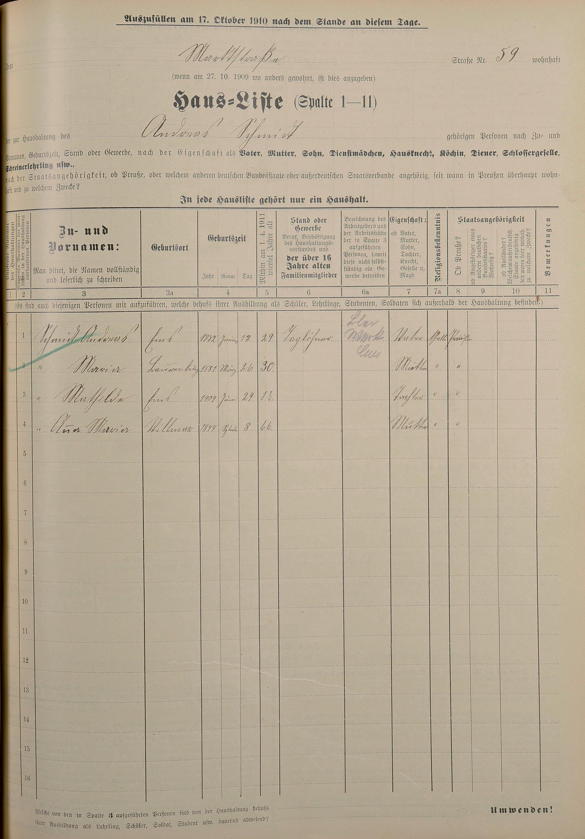Personenstandsaufnahme zur Klassensteuerrolle für 1910