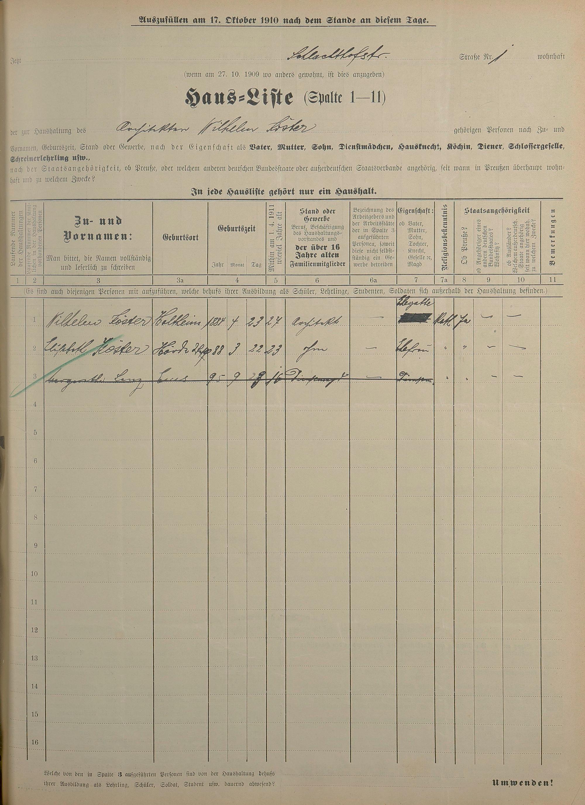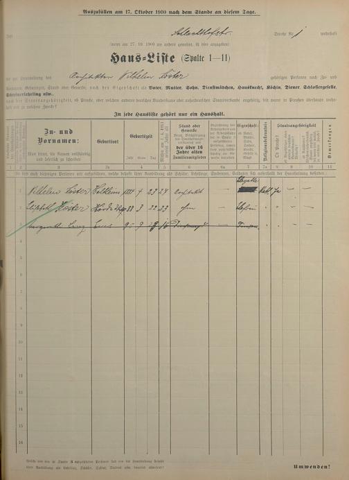 Personenstandsaufnahme zur Klassensteuerrolle für 1910