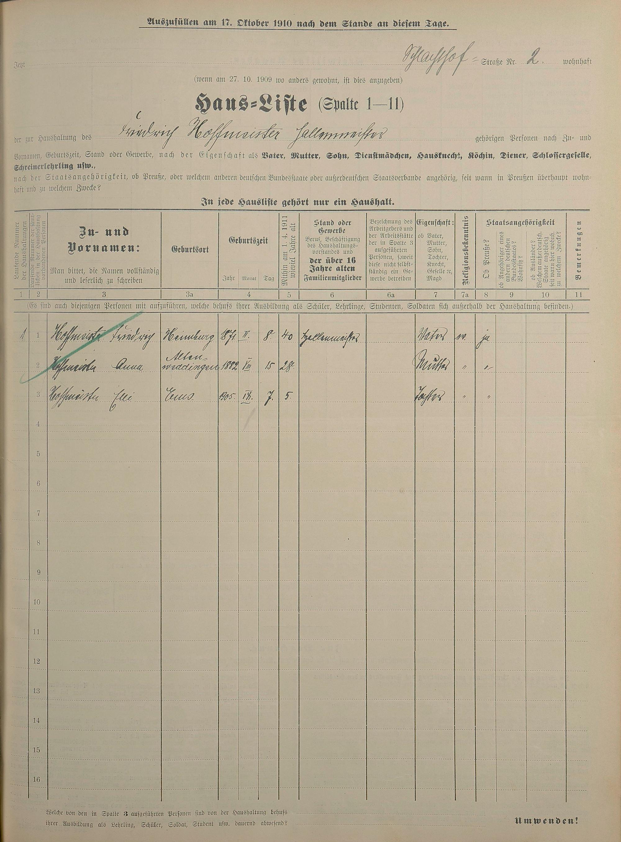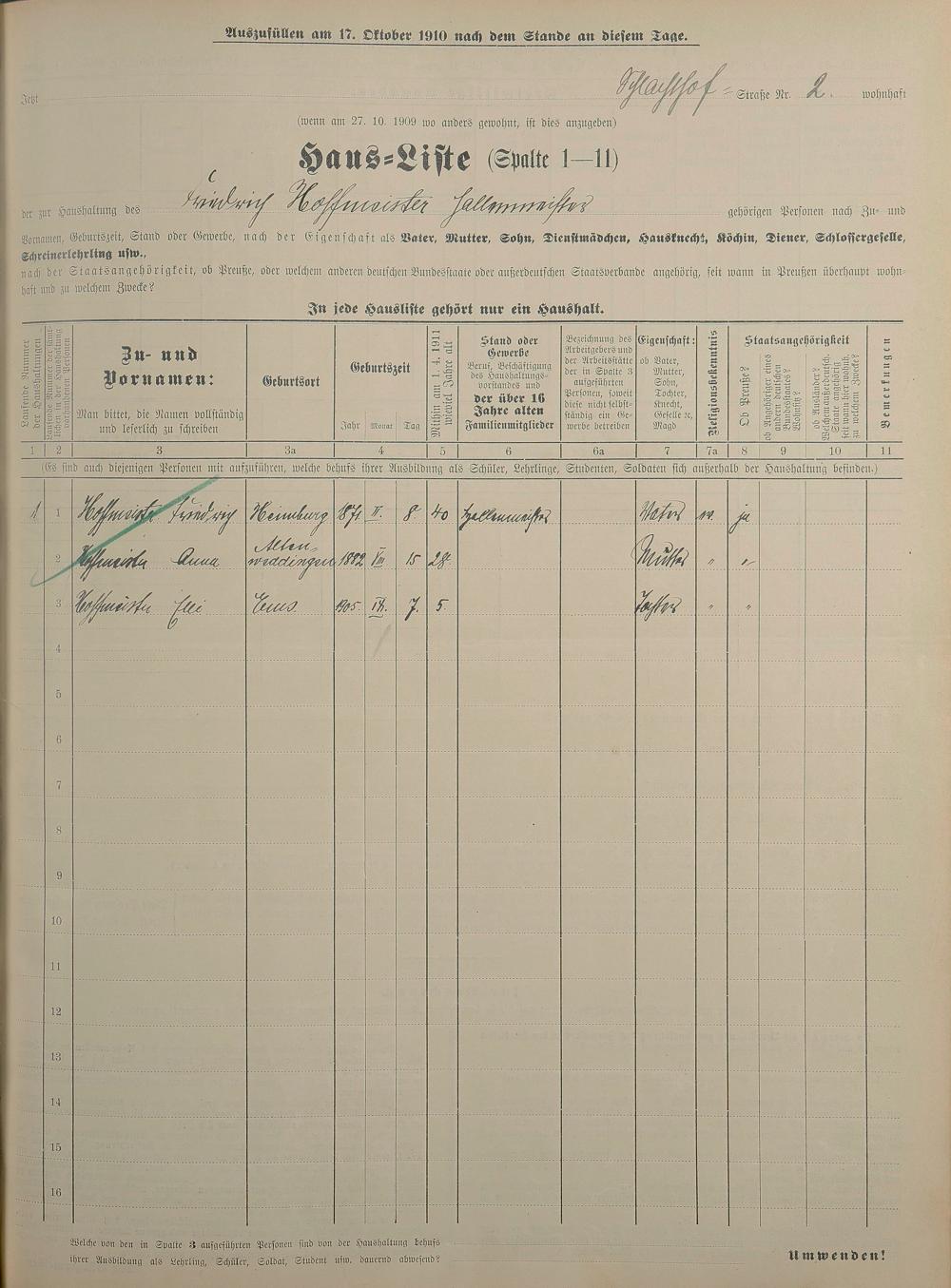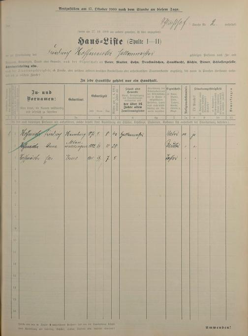 Personenstandsaufnahme zur Klassensteuerrolle für 1910