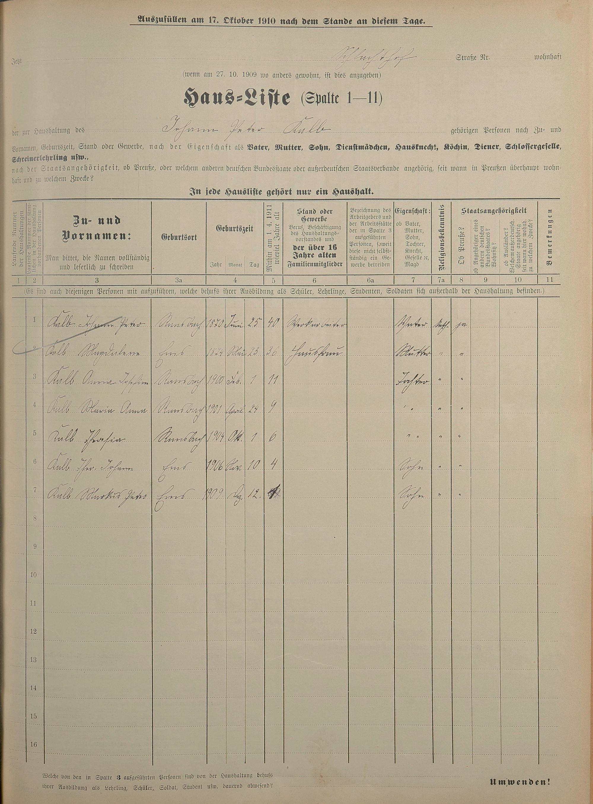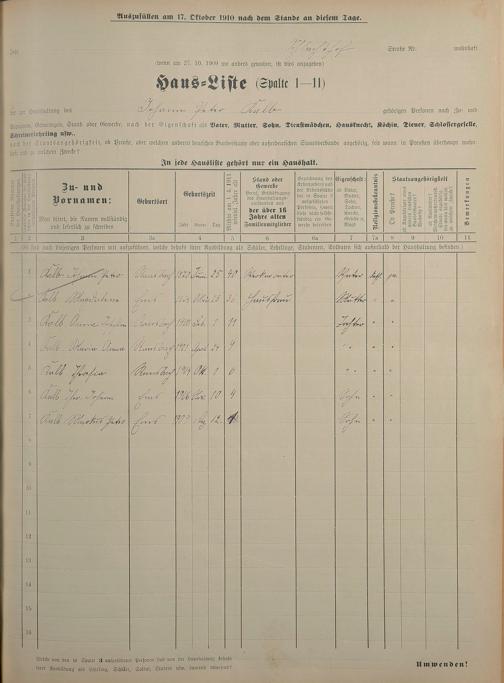 Personenstandsaufnahme zur Klassensteuerrolle für 1910