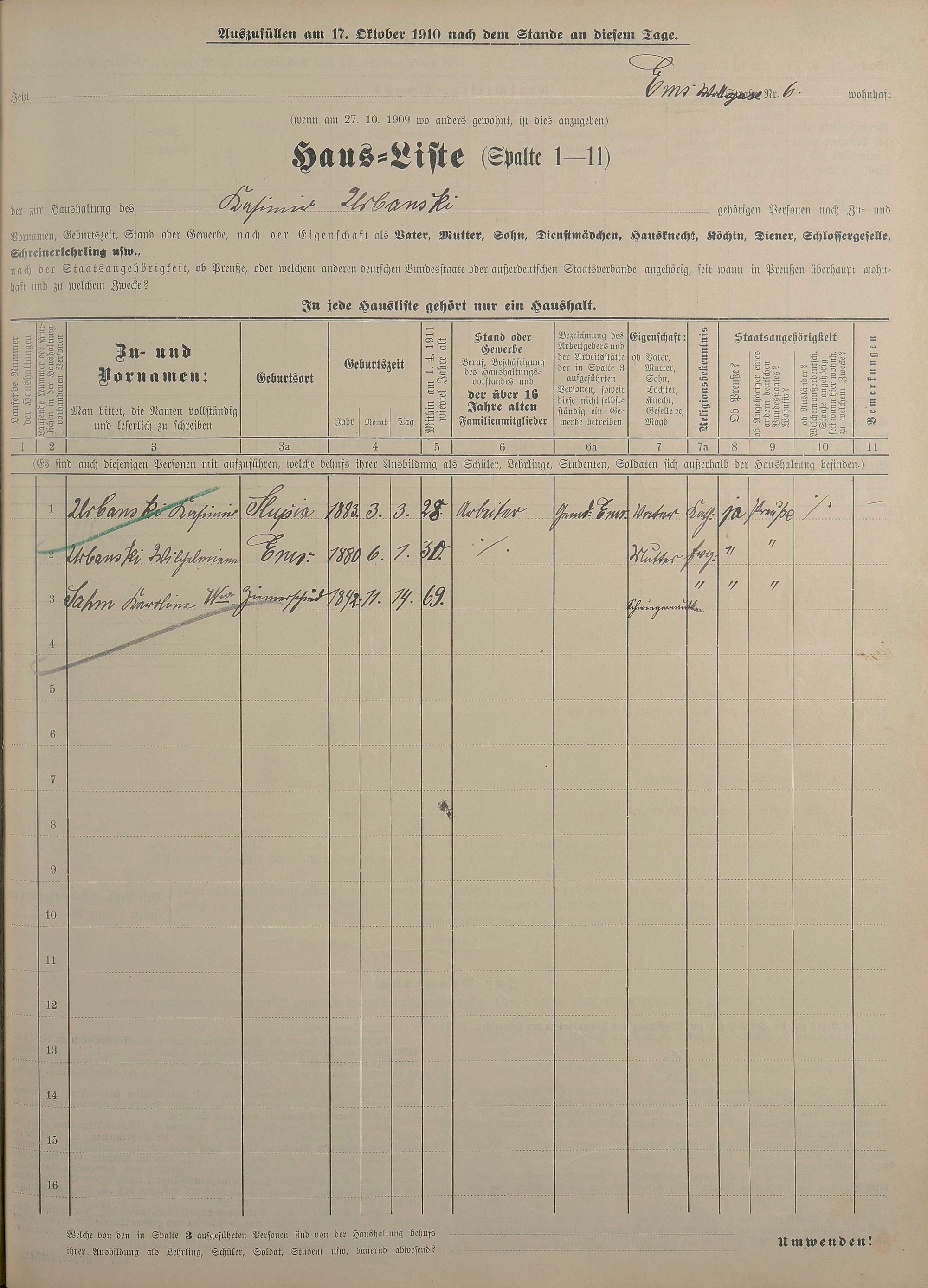 Personenstandsaufnahme zur Klassensteuerrolle für 1910