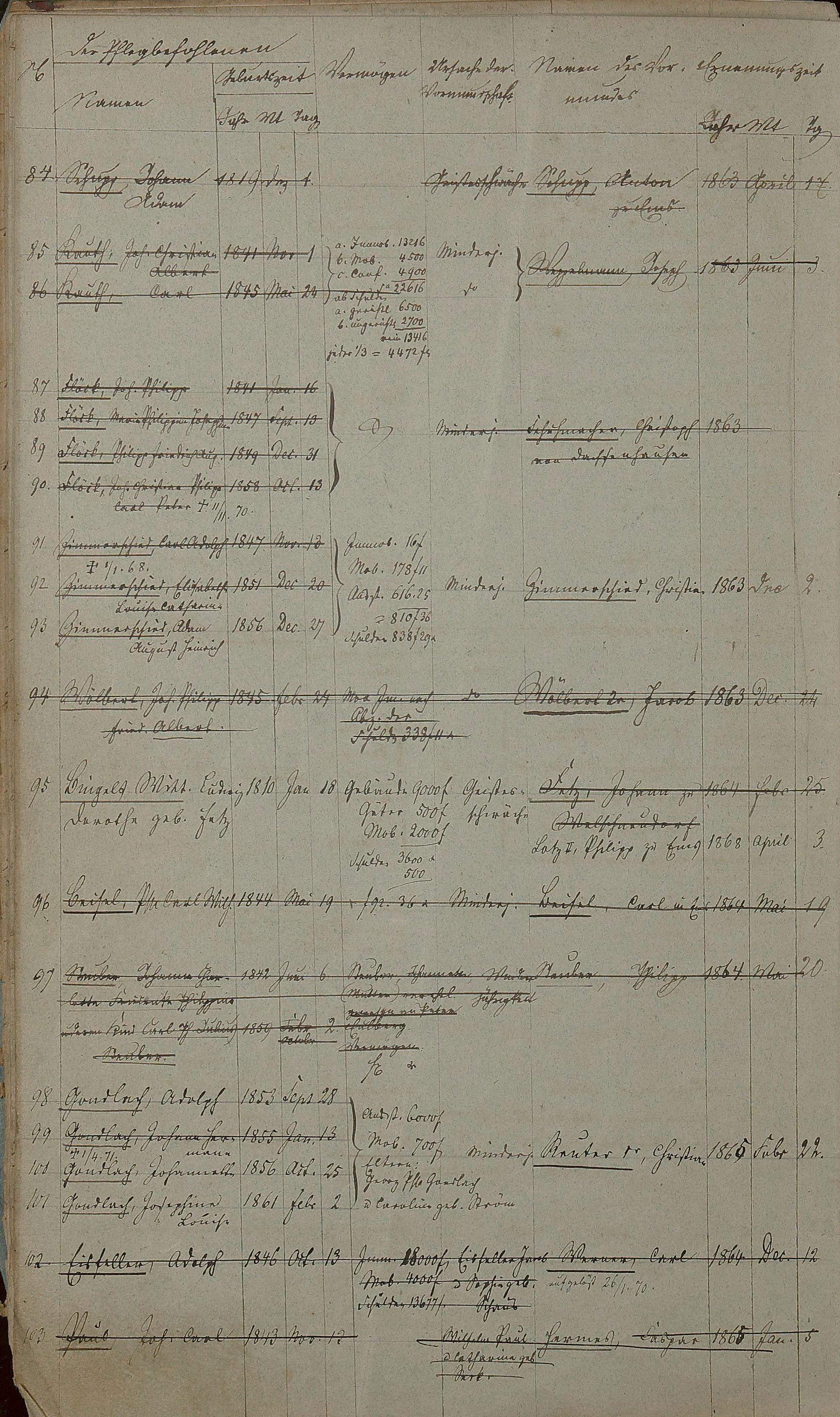 Verzeichnis der in der Gemeinde Ems bestehenden Vormundschaften