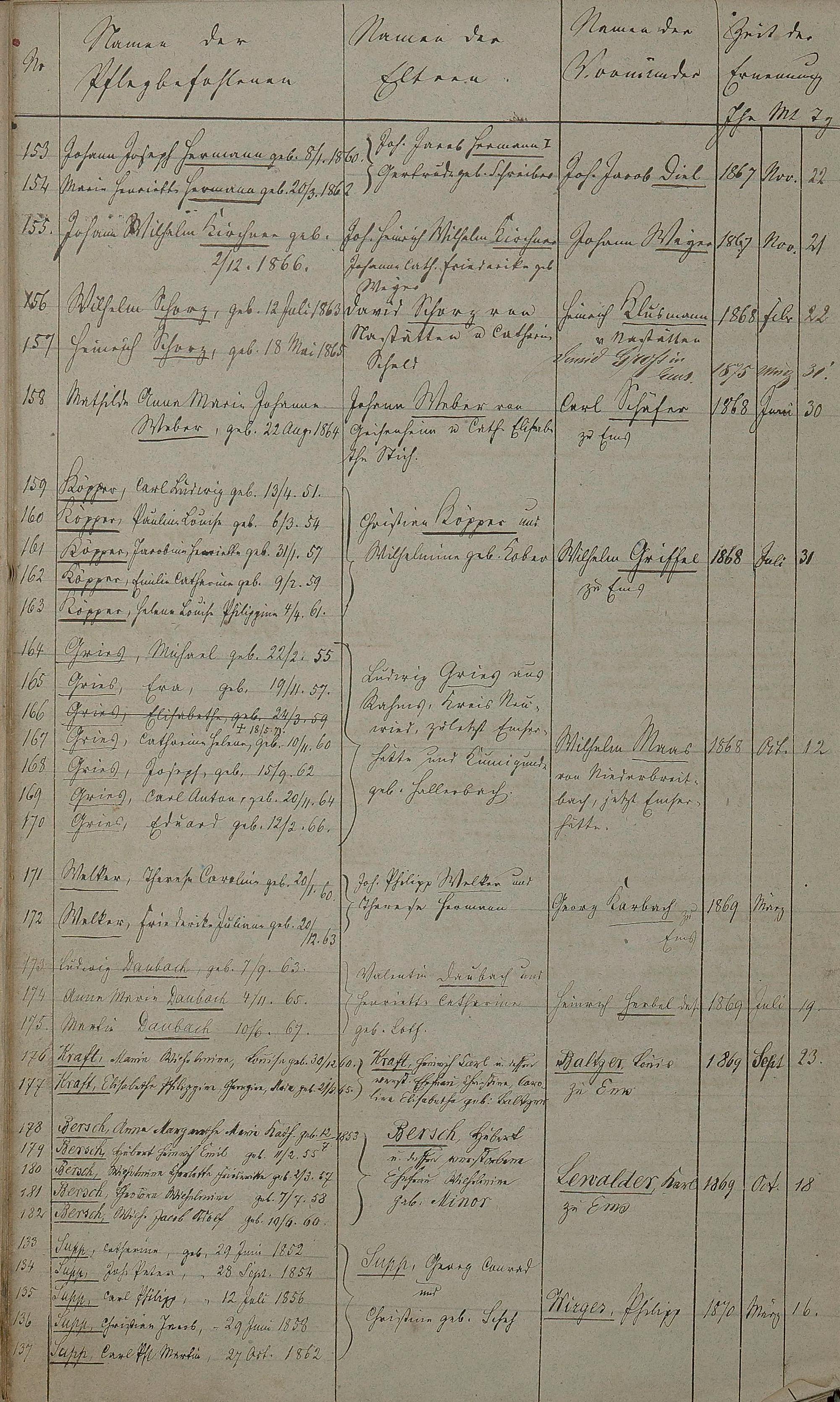 Verzeichnis der in der Gemeinde Ems bestehenden Vormundschaften