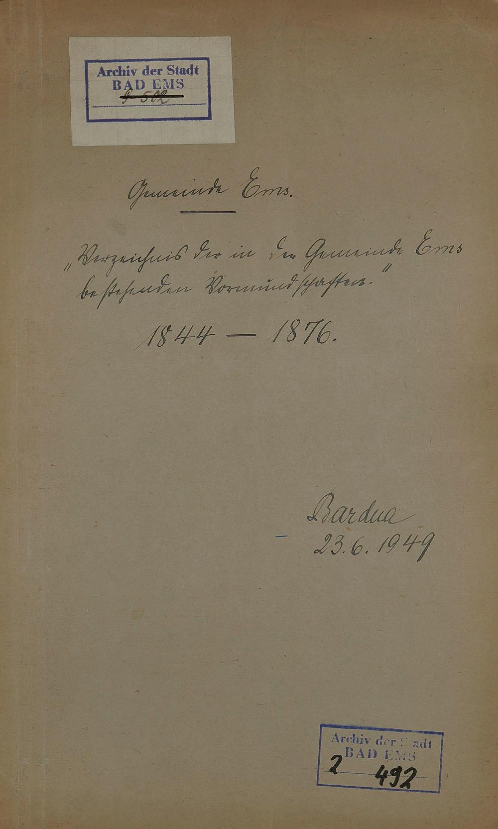 Verzeichnis der in der Gemeinde Ems bestehenden Vormundschaften