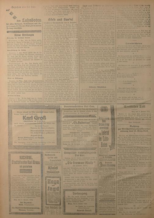 1924: Lahnbote bis 4. Apr. 1924/Emser Zeitung ab 5. Apr. 1924 - Nr. 10, 37 und 71...