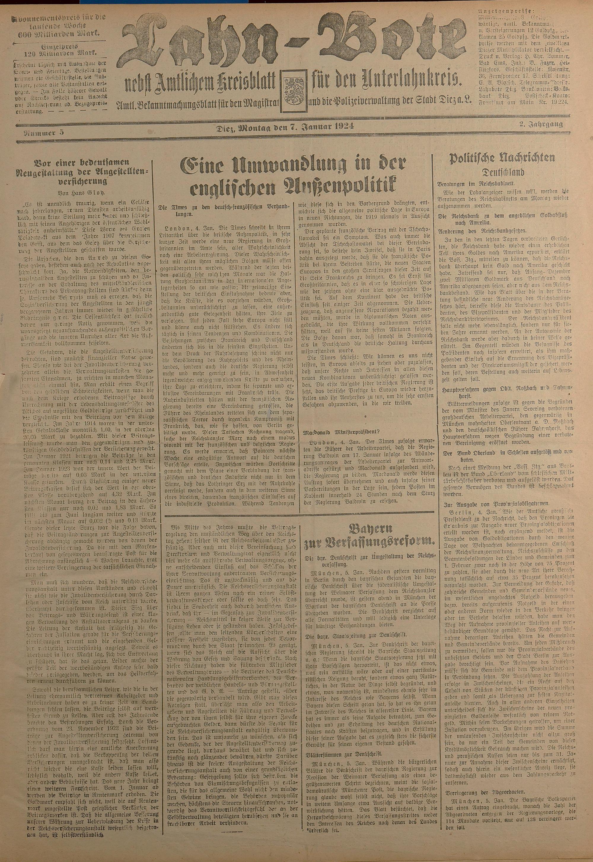 1924: Lahnbote bis 4. Apr. 1924/Emser Zeitung ab 5. Apr. 1924 - Nr. 10, 37 und 71...
