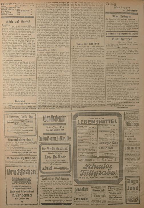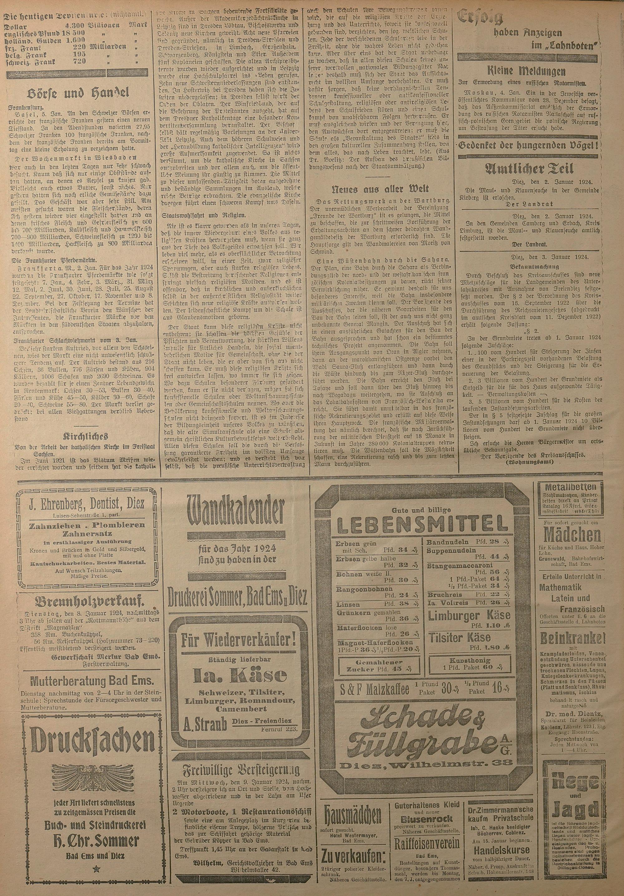 1924: Lahnbote bis 4. Apr. 1924/Emser Zeitung ab 5. Apr. 1924 - Nr. 10, 37 und 71...