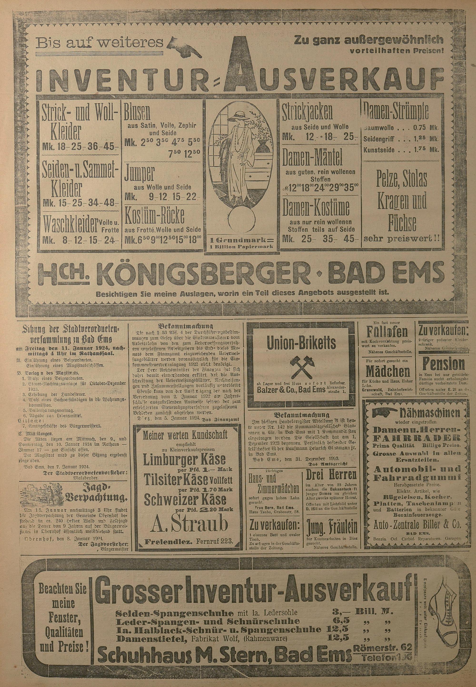 1924: Lahnbote bis 4. Apr. 1924/Emser Zeitung ab 5. Apr. 1924 - Nr. 10, 37 und 71...