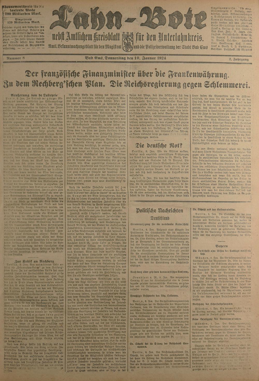1924: Lahnbote bis 4. Apr. 1924/Emser Zeitung ab 5. Apr. 1924 - Nr. 10, 37 und 71...