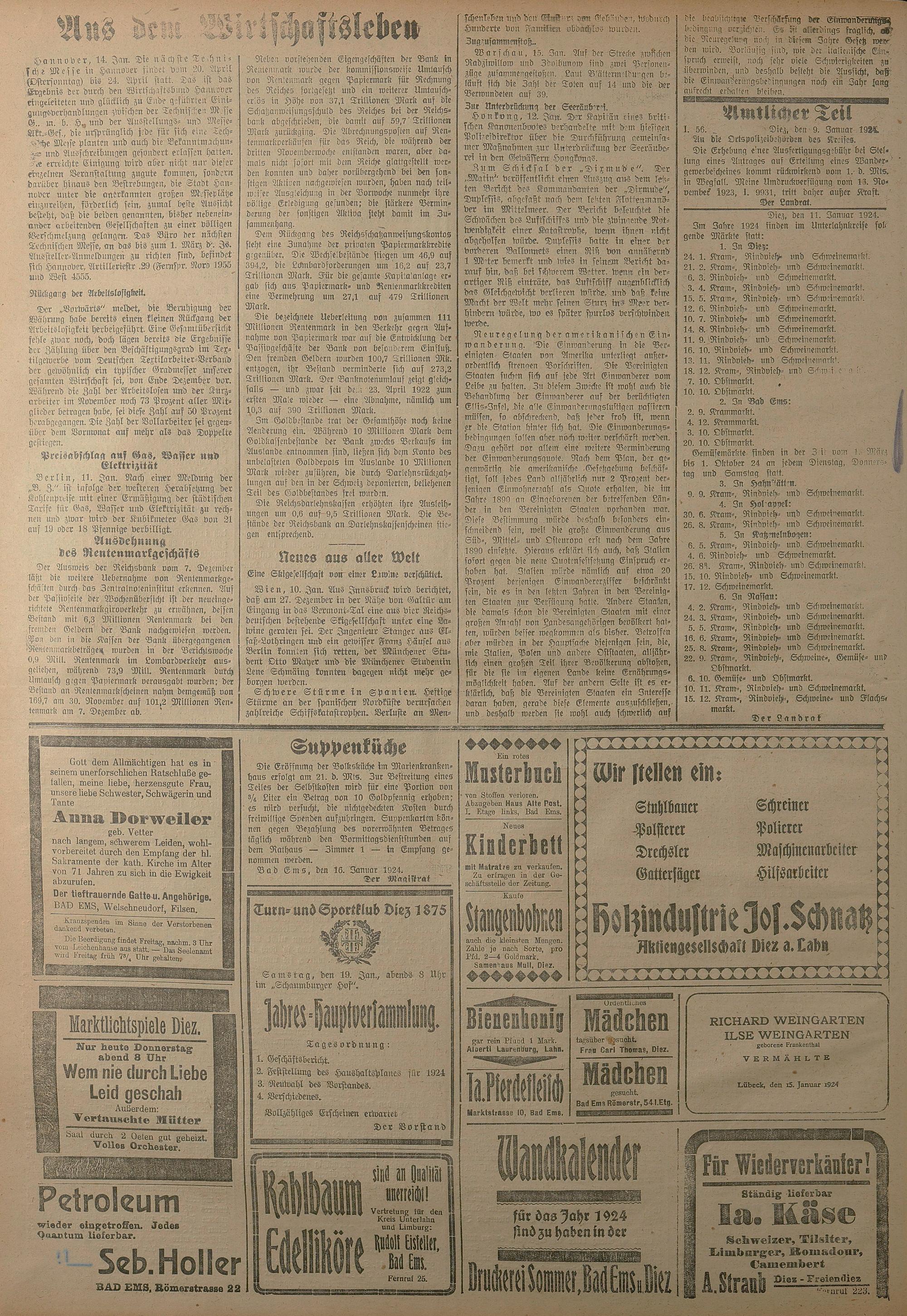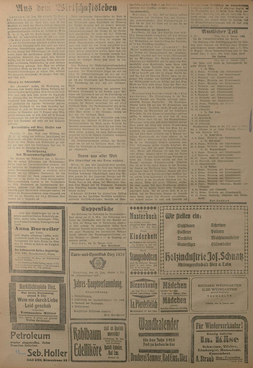 1924: Lahnbote bis 4. Apr. 1924/Emser Zeitung ab 5. Apr. 1924 - Nr. 10, 37 und 71...