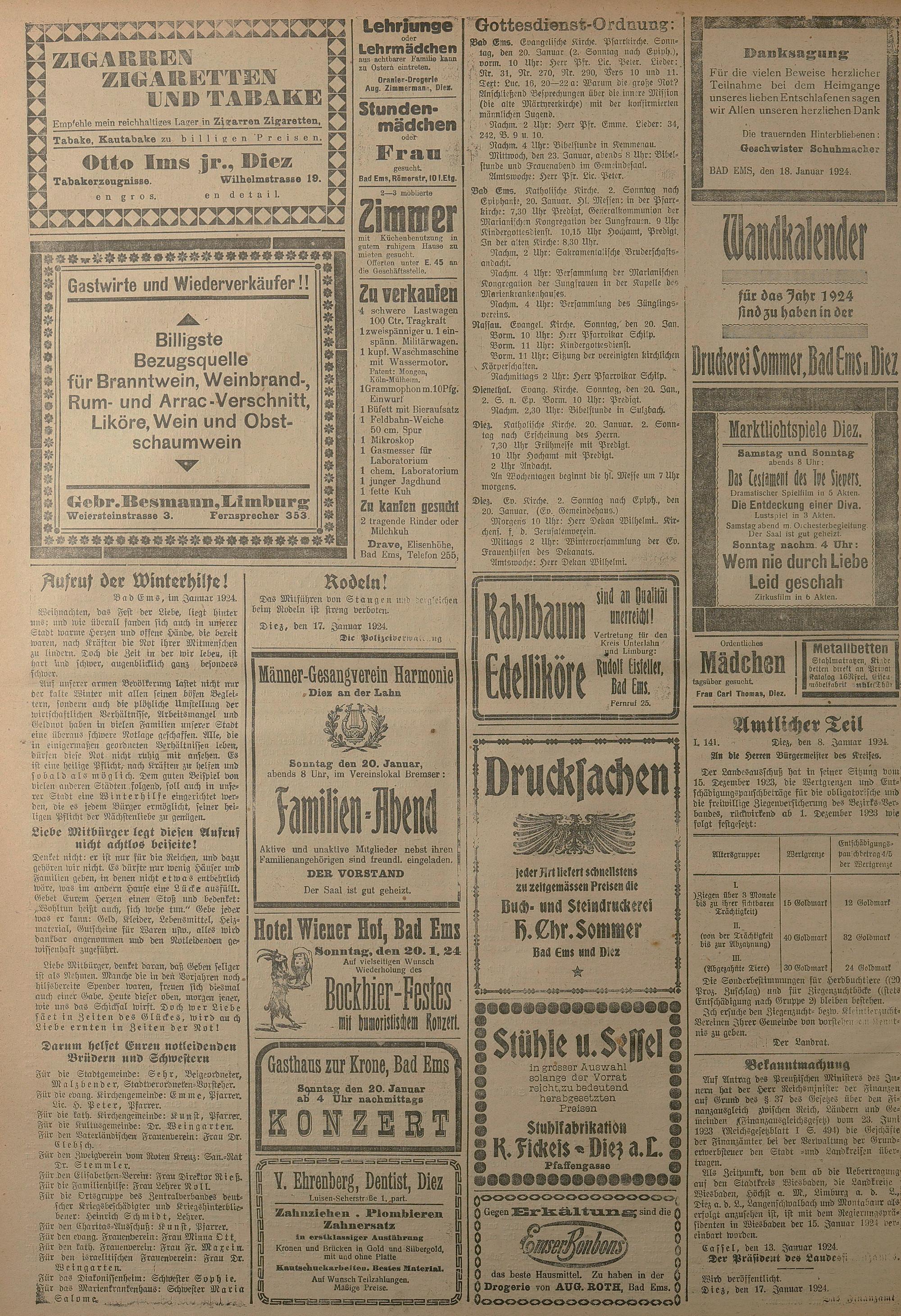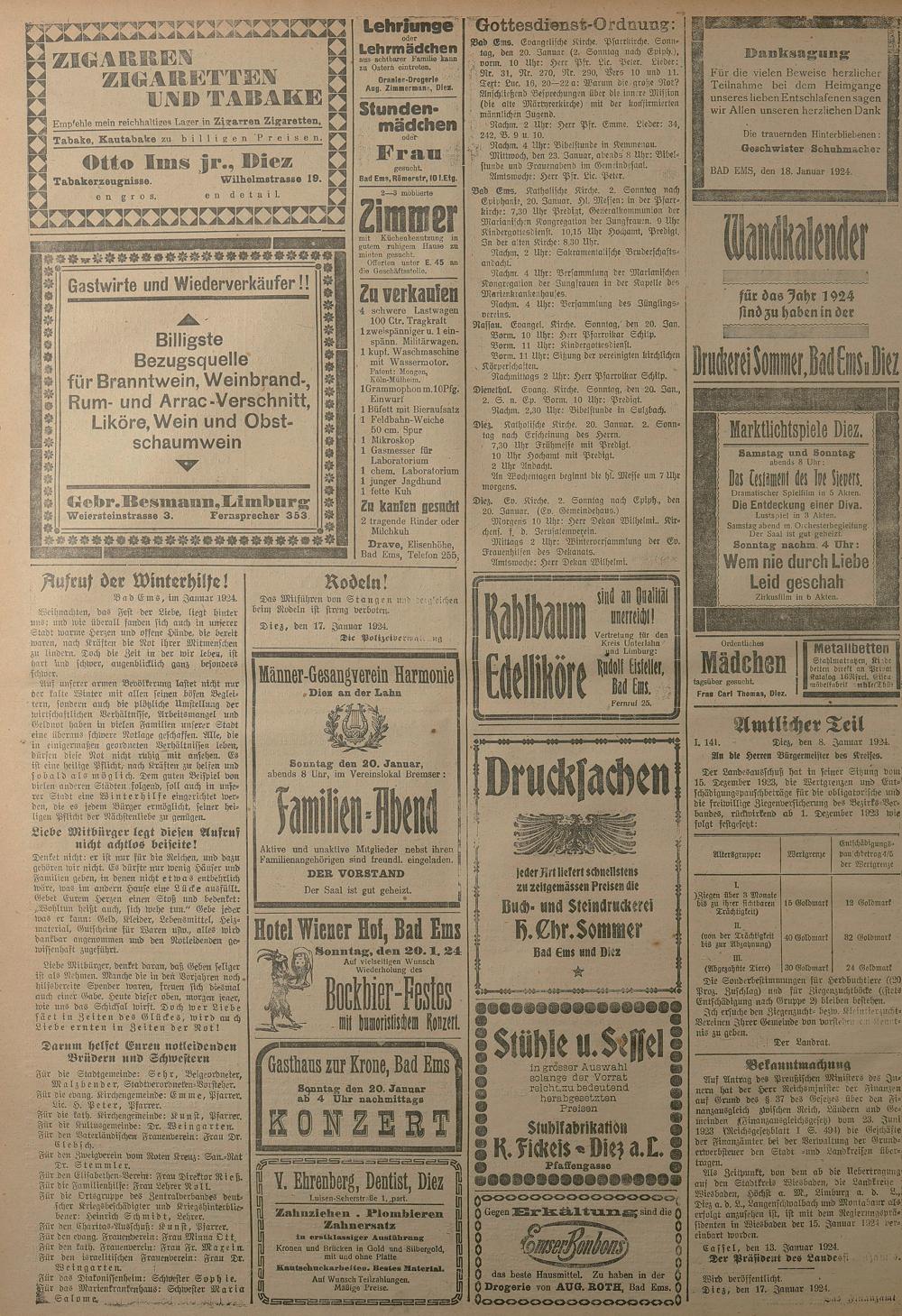 1924: Lahnbote bis 4. Apr. 1924/Emser Zeitung ab 5. Apr. 1924 - Nr. 10, 37 und 71...