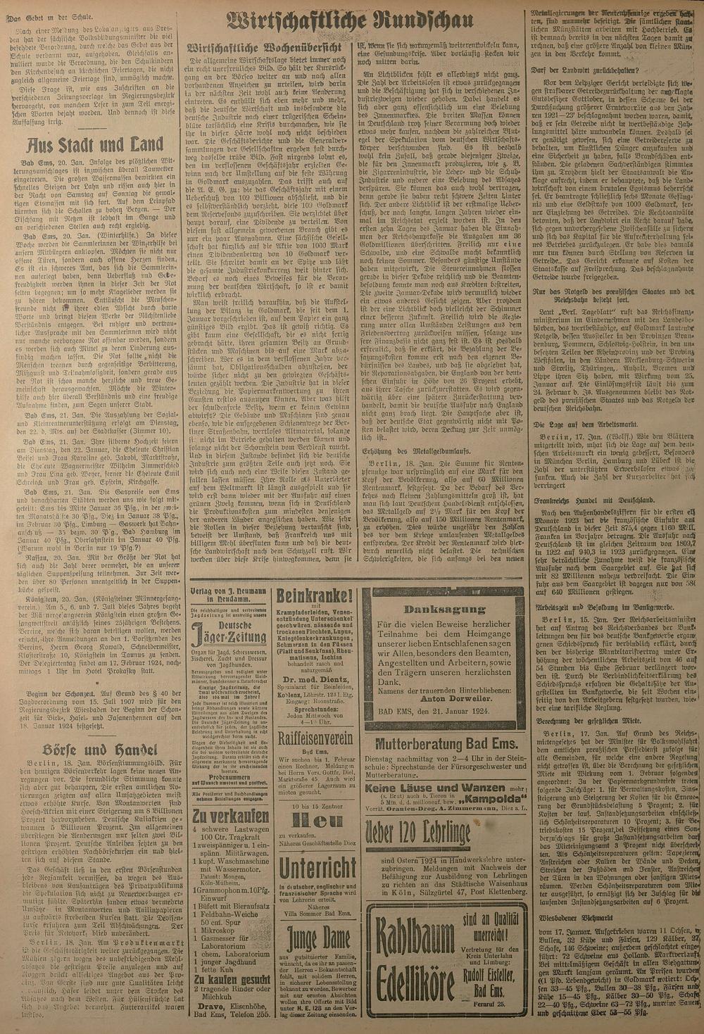 1924: Lahnbote bis 4. Apr. 1924/Emser Zeitung ab 5. Apr. 1924 - Nr. 10, 37 und 71...