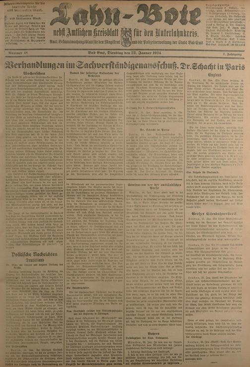 1924: Lahnbote bis 4. Apr. 1924/Emser Zeitung ab 5. Apr. 1924 - Nr. 10, 37 und 71...