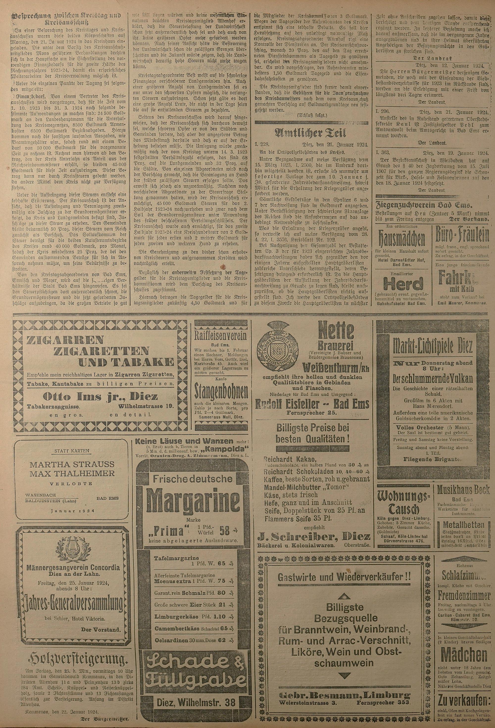 1924: Lahnbote bis 4. Apr. 1924/Emser Zeitung ab 5. Apr. 1924 - Nr. 10, 37 und 71...