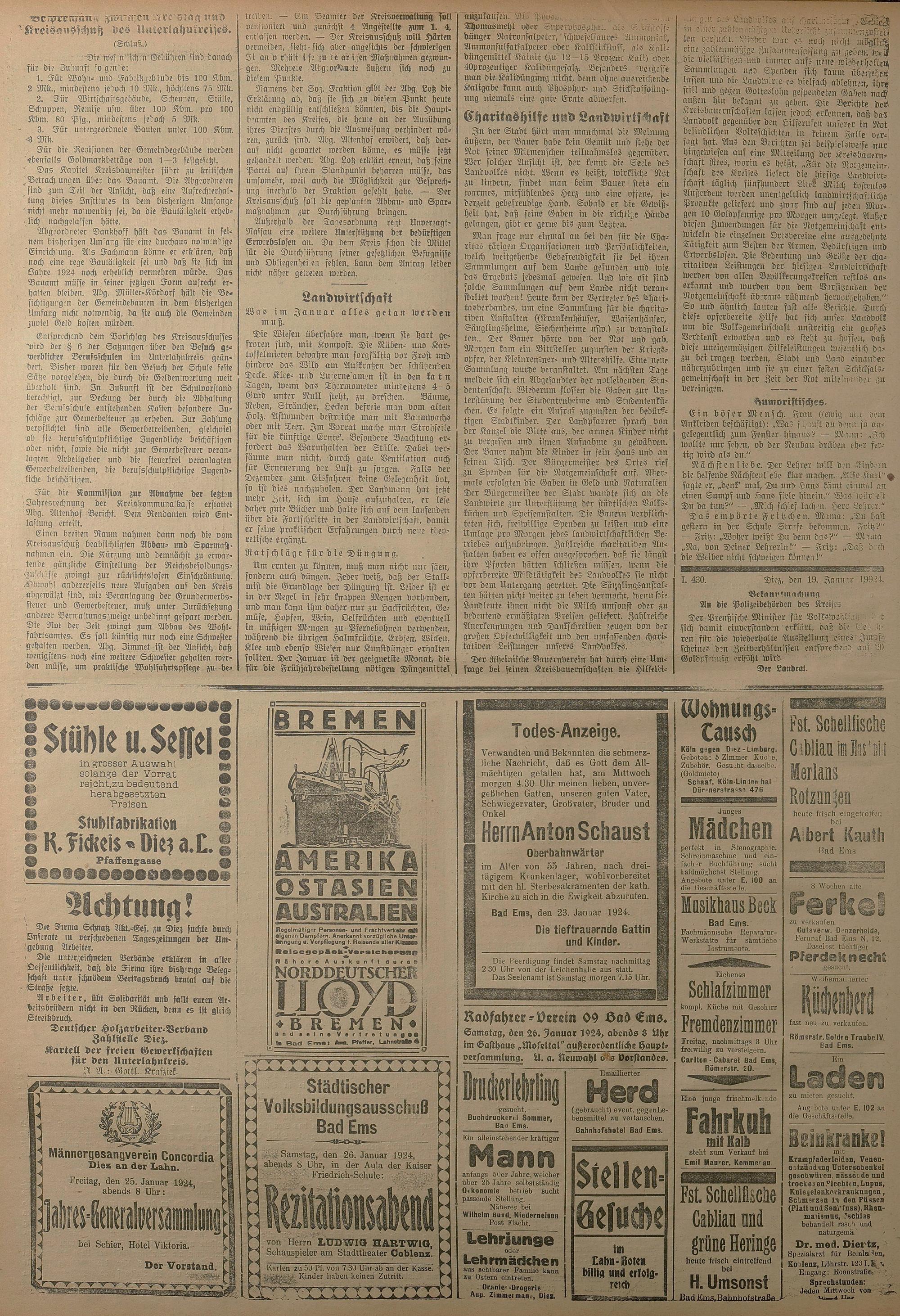 1924: Lahnbote bis 4. Apr. 1924/Emser Zeitung ab 5. Apr. 1924 - Nr. 10, 37 und 71...