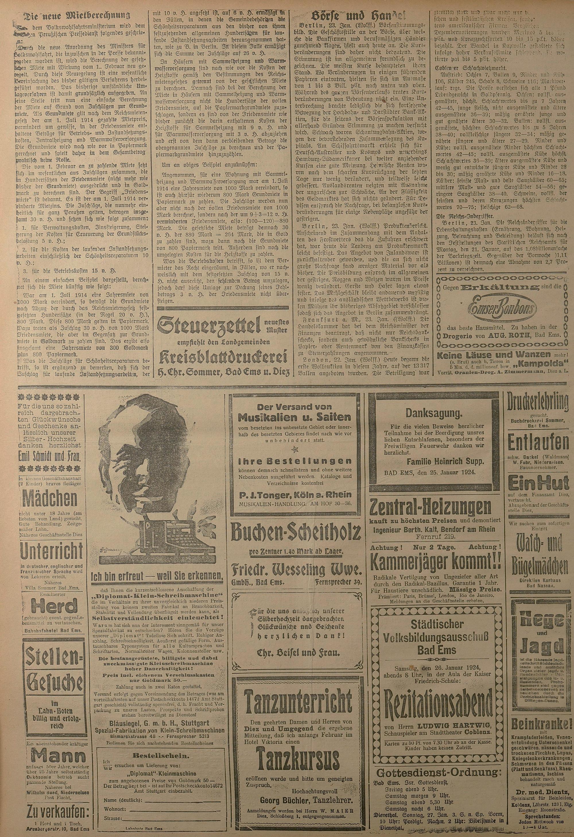 1924: Lahnbote bis 4. Apr. 1924/Emser Zeitung ab 5. Apr. 1924 - Nr. 10, 37 und 71...