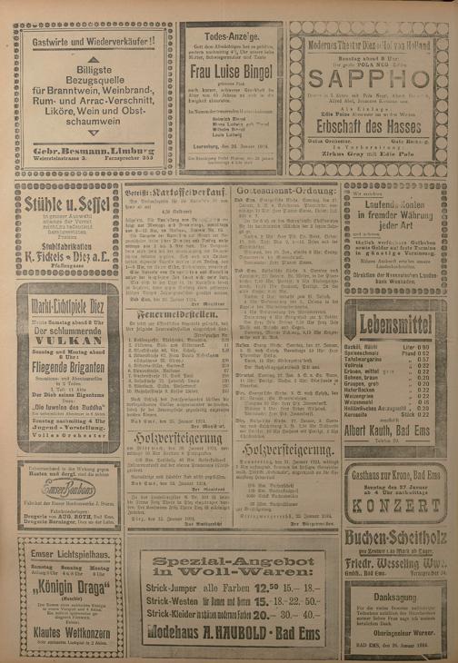 1924: Lahnbote bis 4. Apr. 1924/Emser Zeitung ab 5. Apr. 1924 - Nr. 10, 37 und 71...