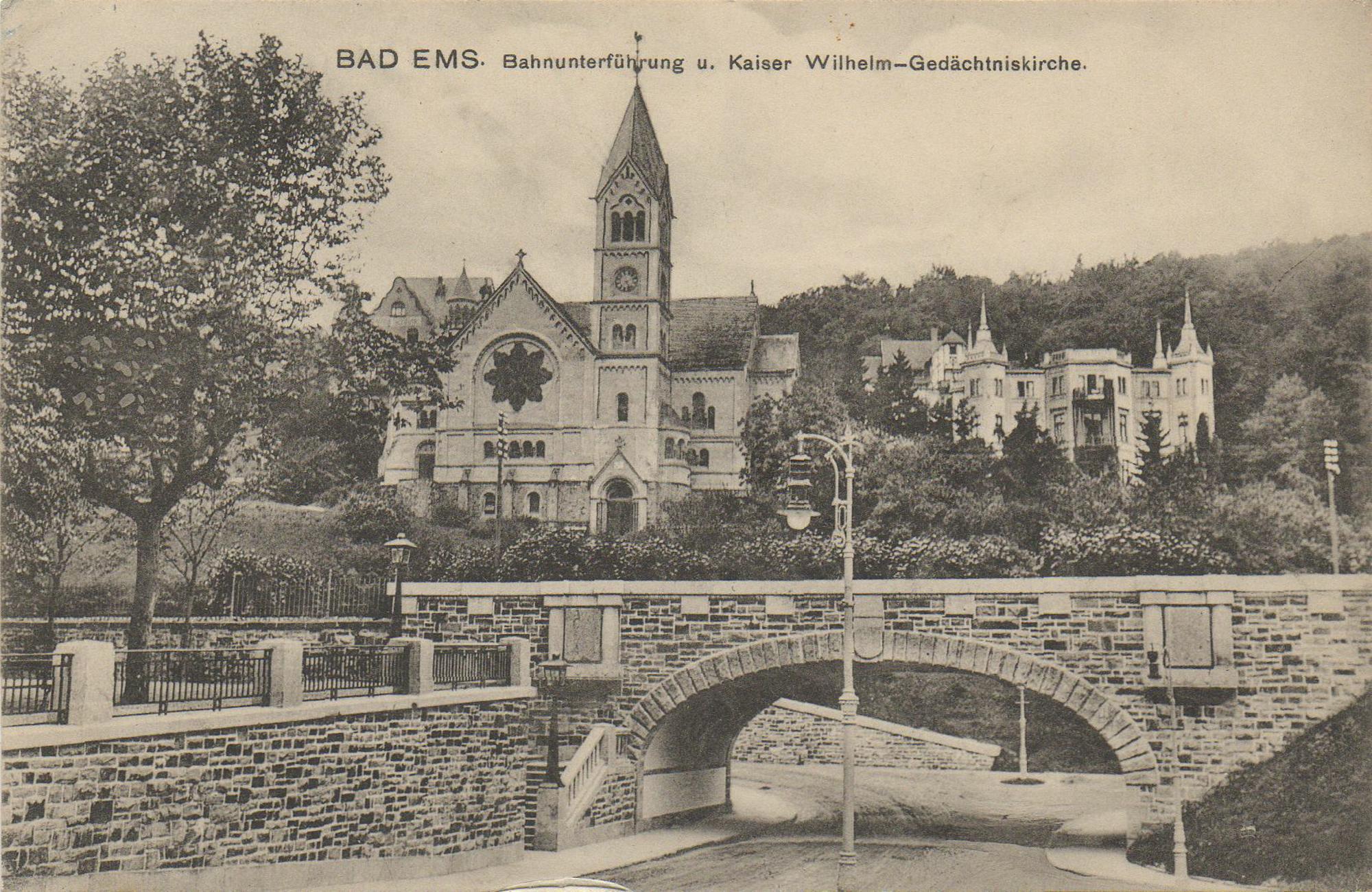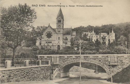 Badhausstraße mit Bahnunterführung, Kaiser-Wilhelm-Kirche und Villa Reale