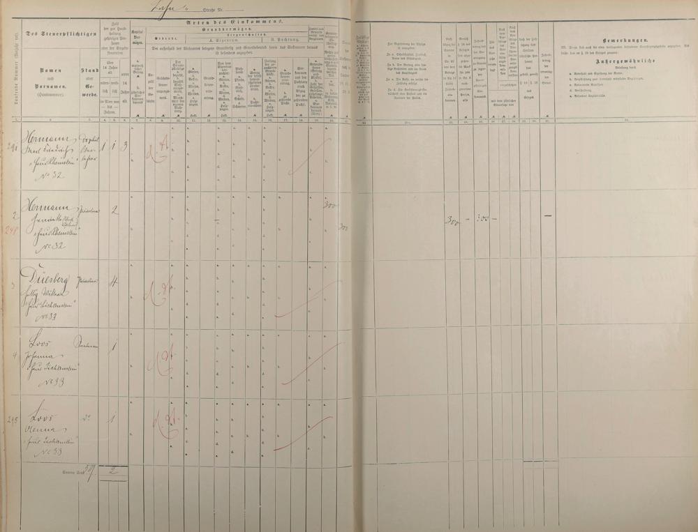 Personenverzeichnis und Einkommenssteuerliste 1893 nach Straßen