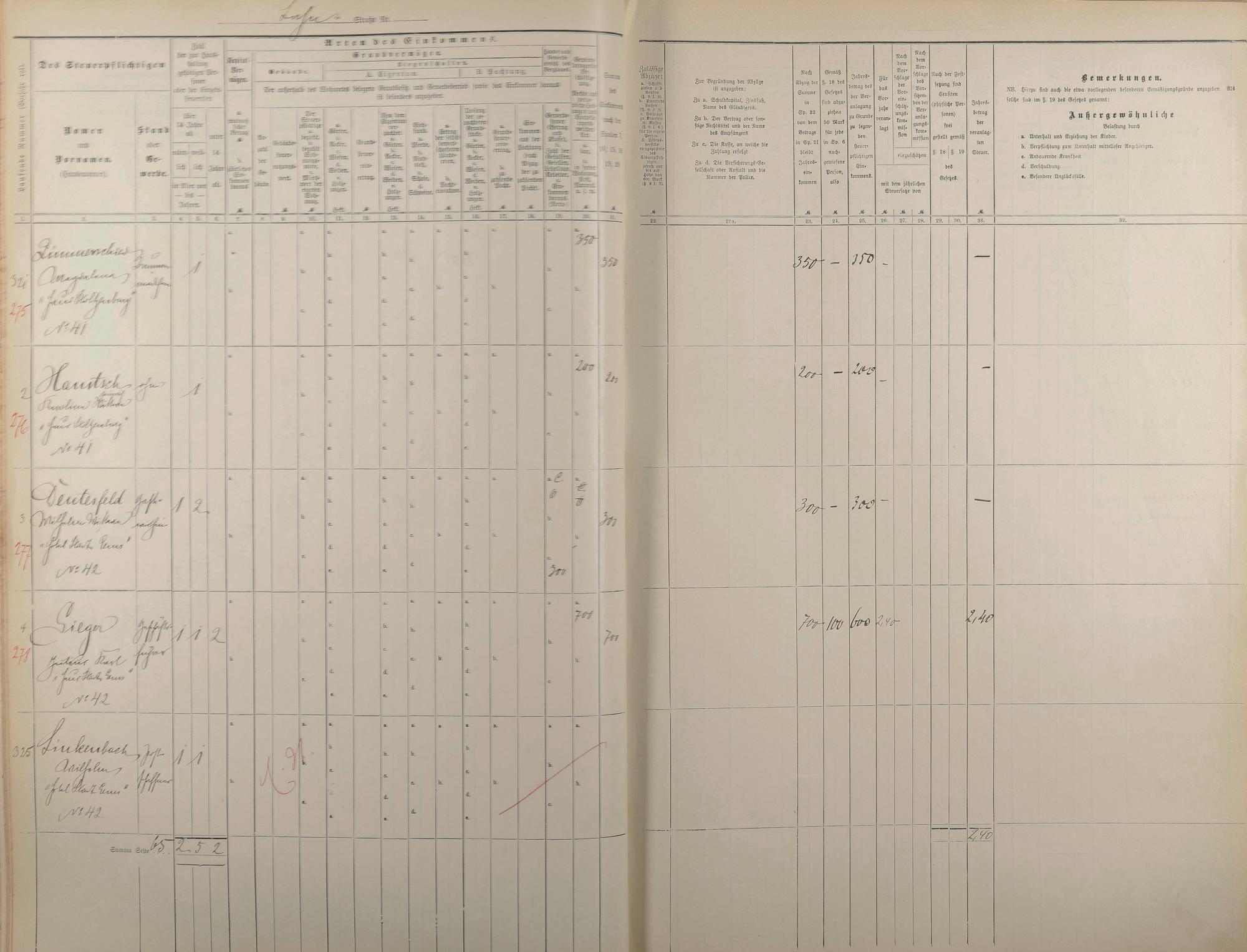 231: Personenverzeichnis und Einkommenssteuerliste 1893 nach Straßen