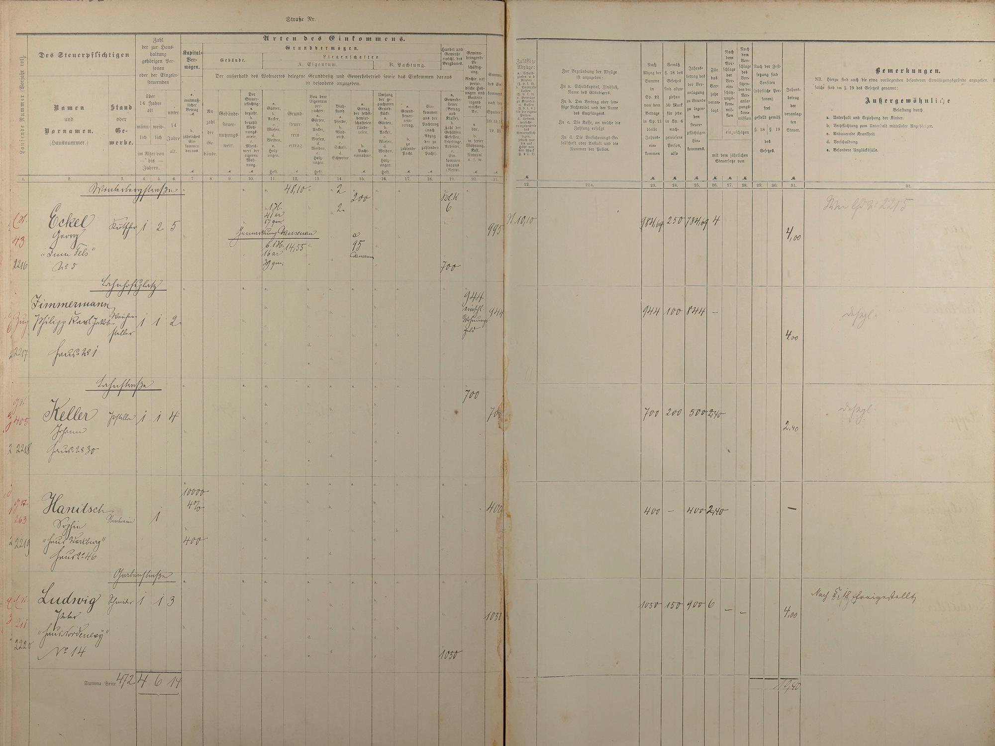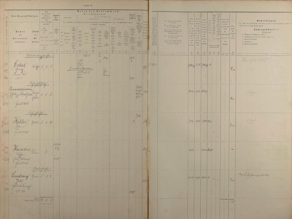 Personenverzeichnis und Einkommenssteuerliste 1893 nach Straßen