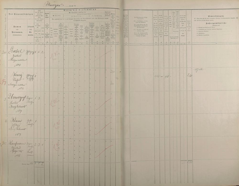 Personenverzeichnis und Einkommenssteuerliste 1893 nach Straßen